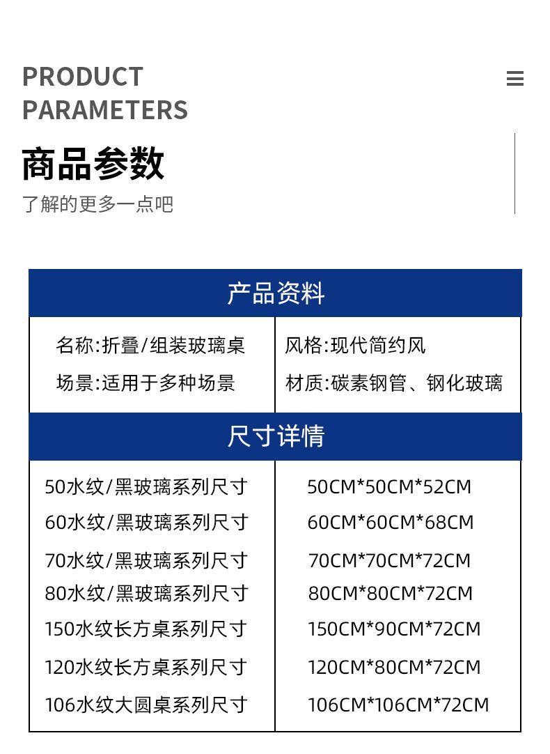 • 70 검정색 유리 접이식 사각 테이블