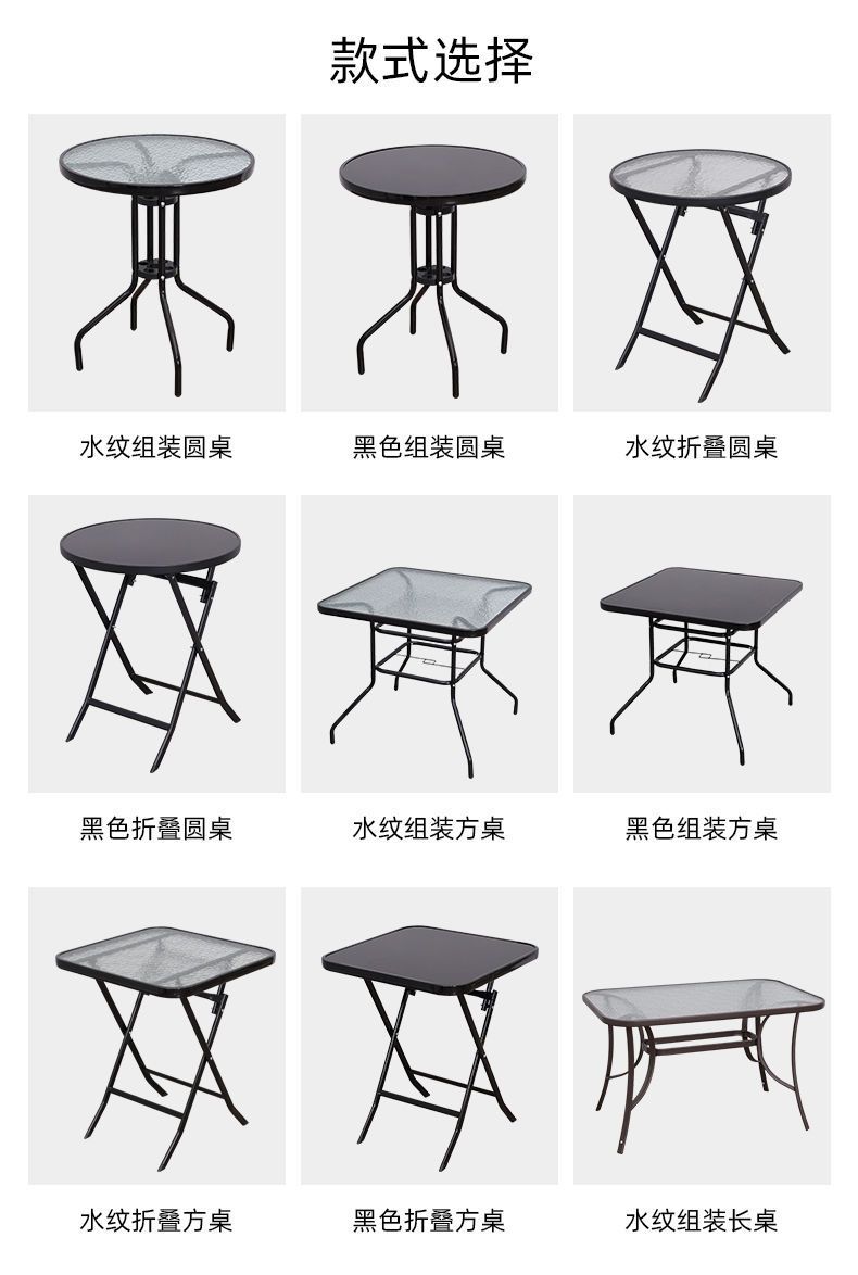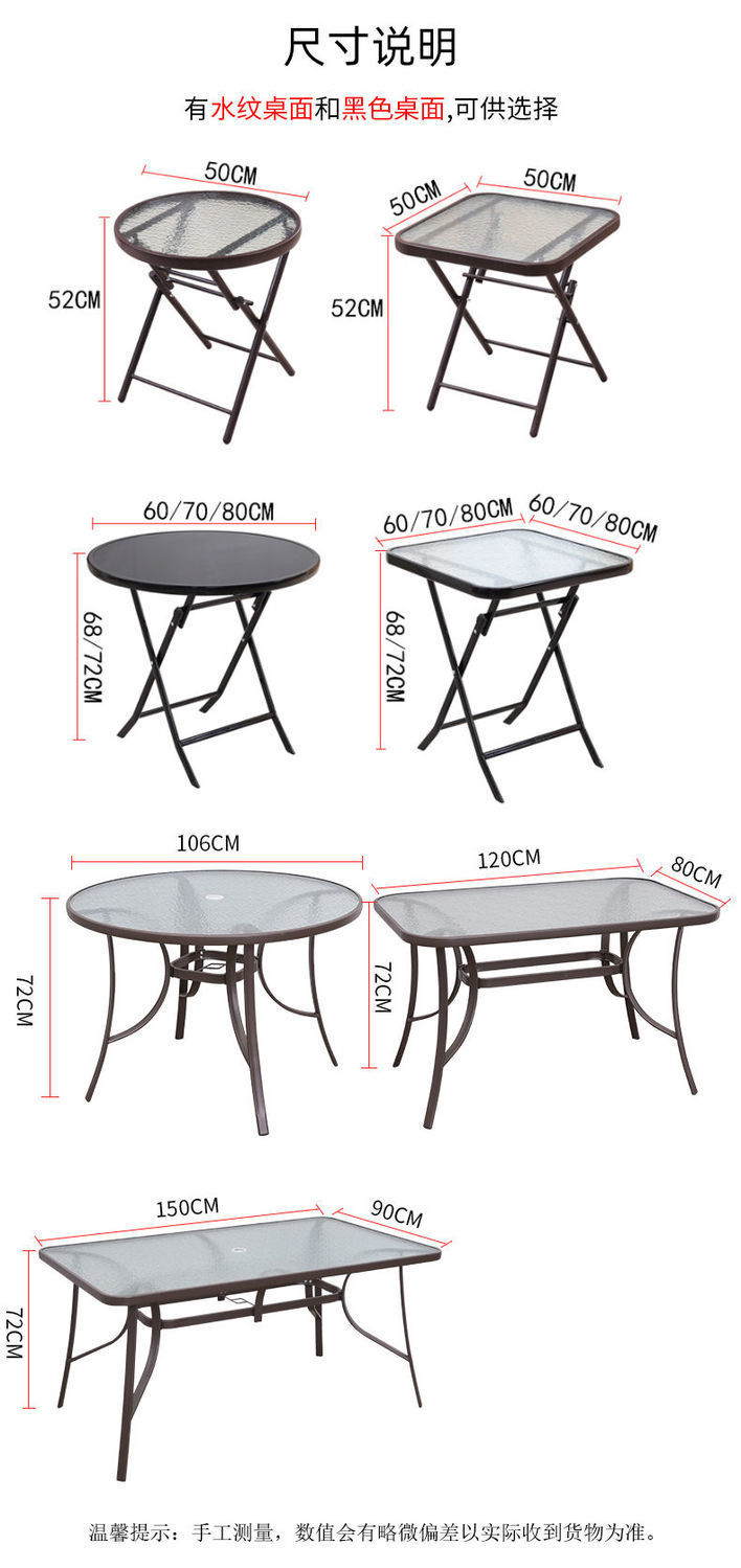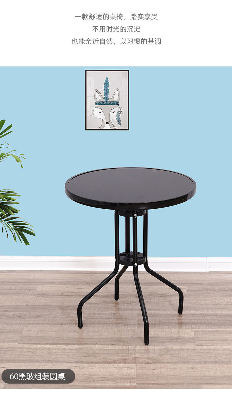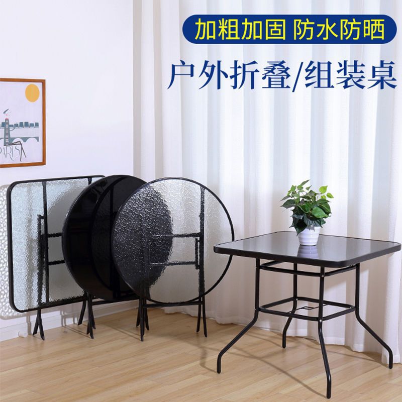 인터넷 연예인 접이식 테이블 야외 발코니 작은 테이블과 의자 강화 유리 테이블 야외 가정용 원형 테이블 식탁 밀크티 가게 야외 테이블