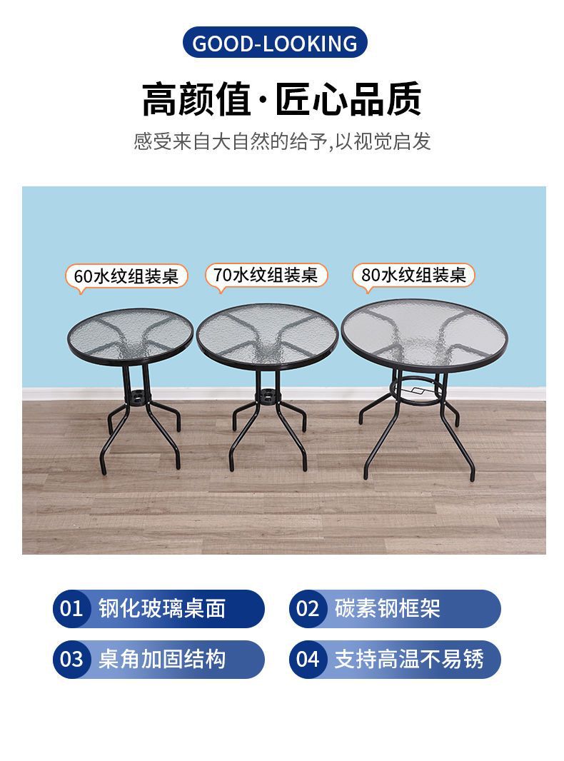 인터넷 연예인 접이식 테이블 야외 발코니 작은 테이블과 의자 강화 유리 테이블 야외 가정용 원형 테이블 식탁 밀크티 가게 야외 테이블스토어 가기