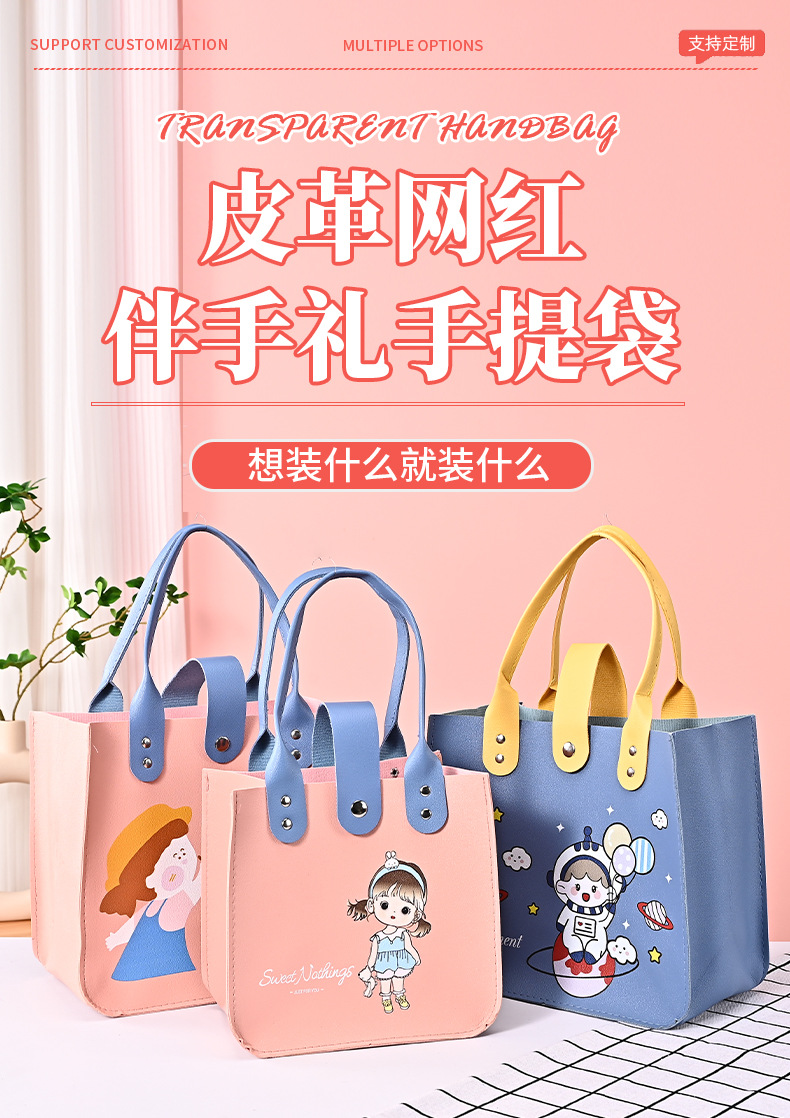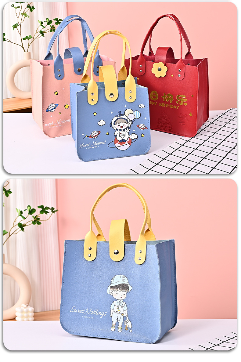 어린이 날 선물 가방 어린이 날 선물 가방 생일 웨딩 선물 가방 만화 pu 가죽 핸드백을 사용자 정의 할 수 있습니다스토어 가기