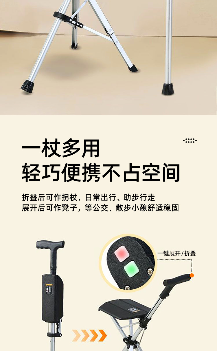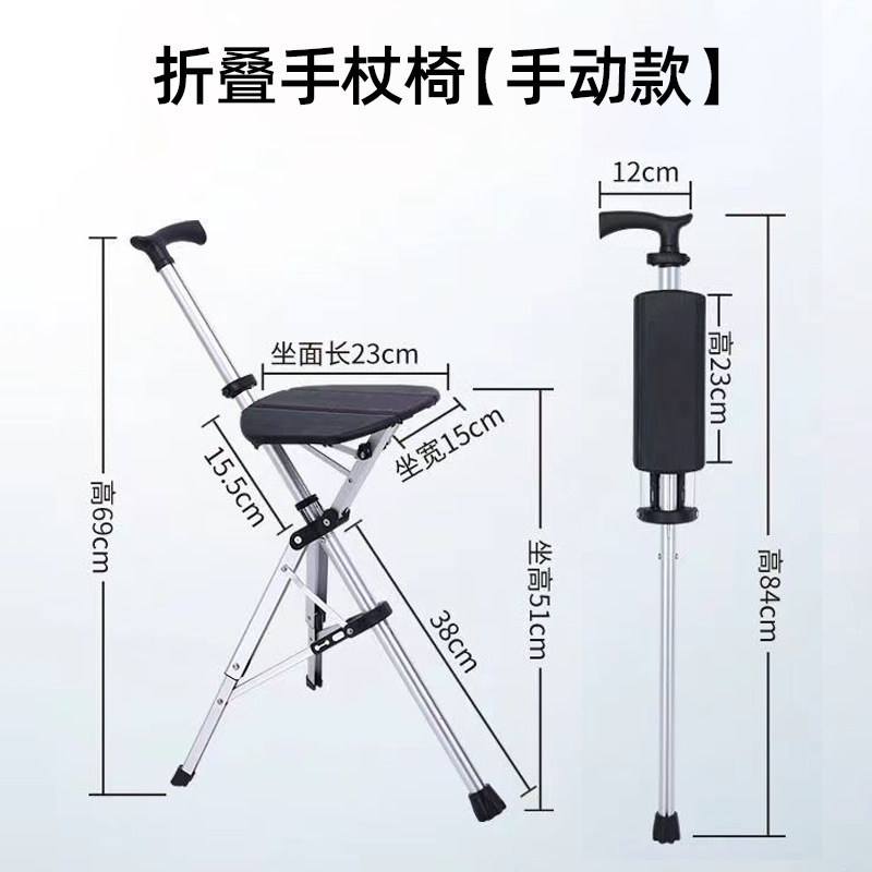 완전 자동 스마트 지팡이 의자 [전기 버튼 개폐] 노인용 접이식 의자 휴대용 접이식 지팡이 의자