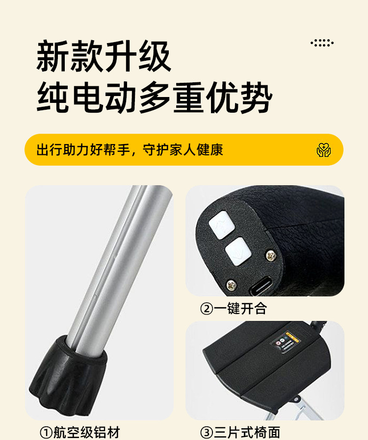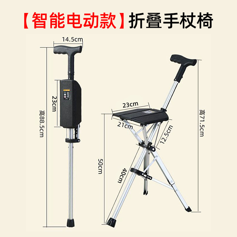 완전 자동 스마트 지팡이 의자 [전기 버튼 개폐] 노인용 접이식 의자 휴대용 접이식 지팡이 의자스토어 가기