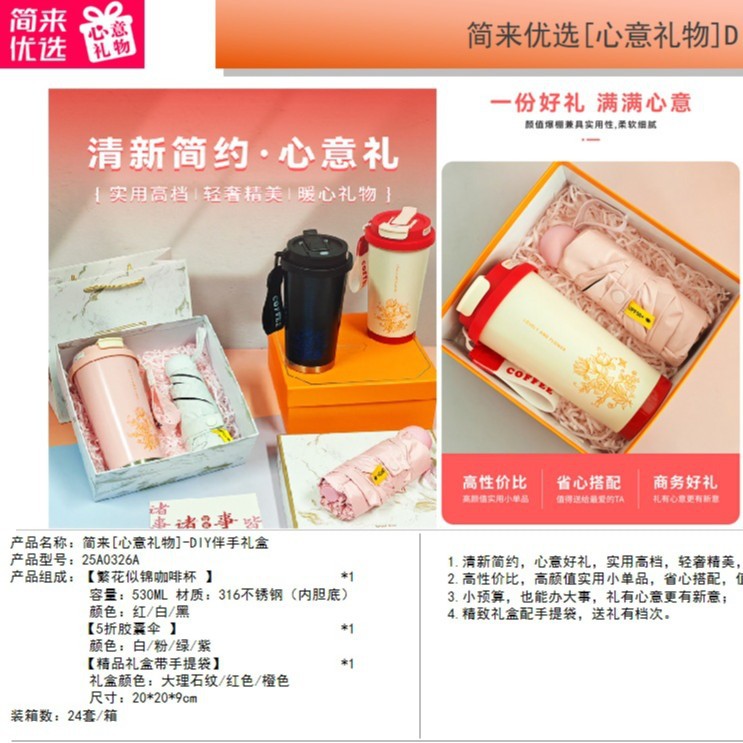 • [316 블라썸 커피컵] *1 [자외선 차단제 캡슐우산 50% off개] *1 [핸드백이 포함된 프리미엄 선물 상자] *1
