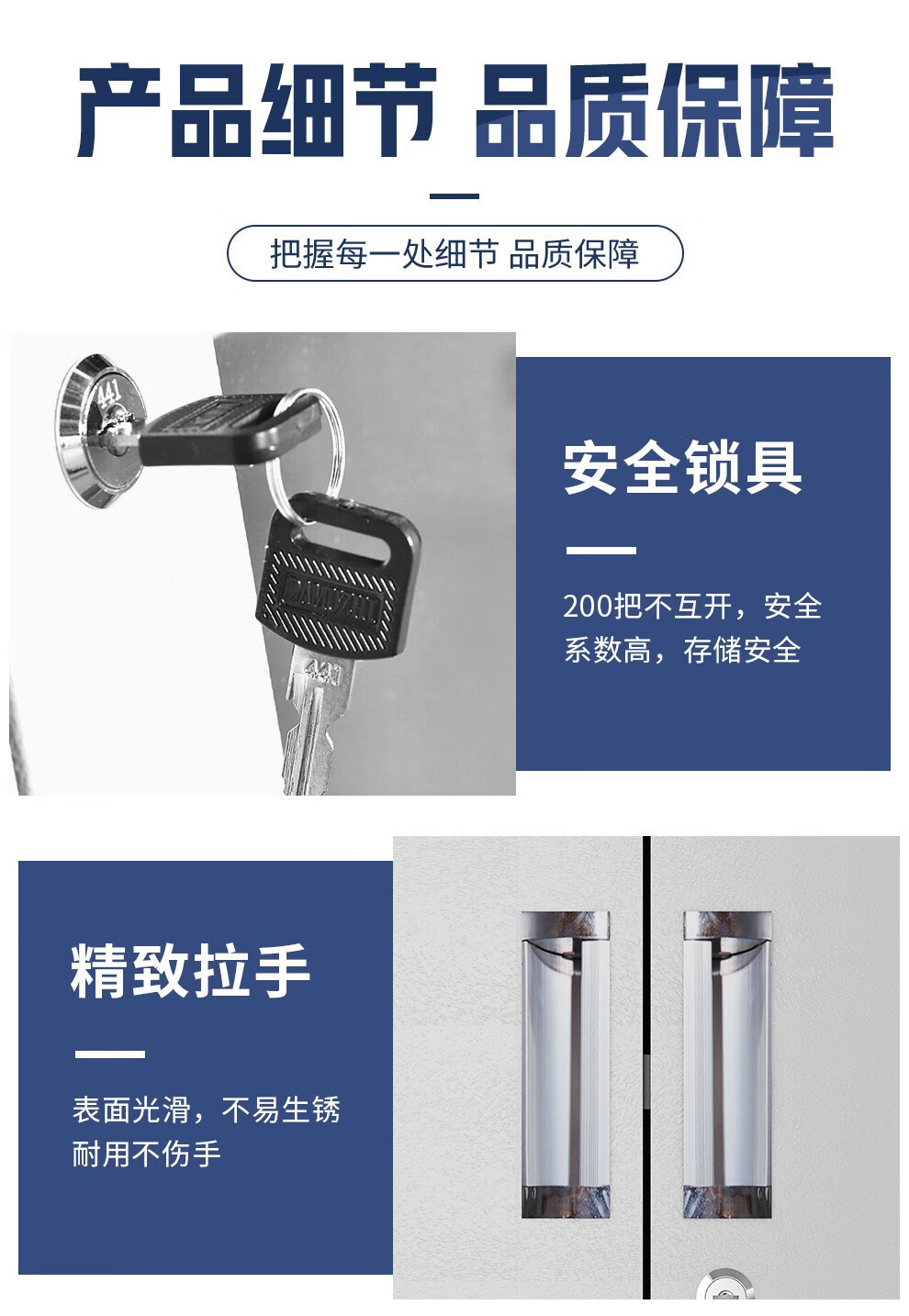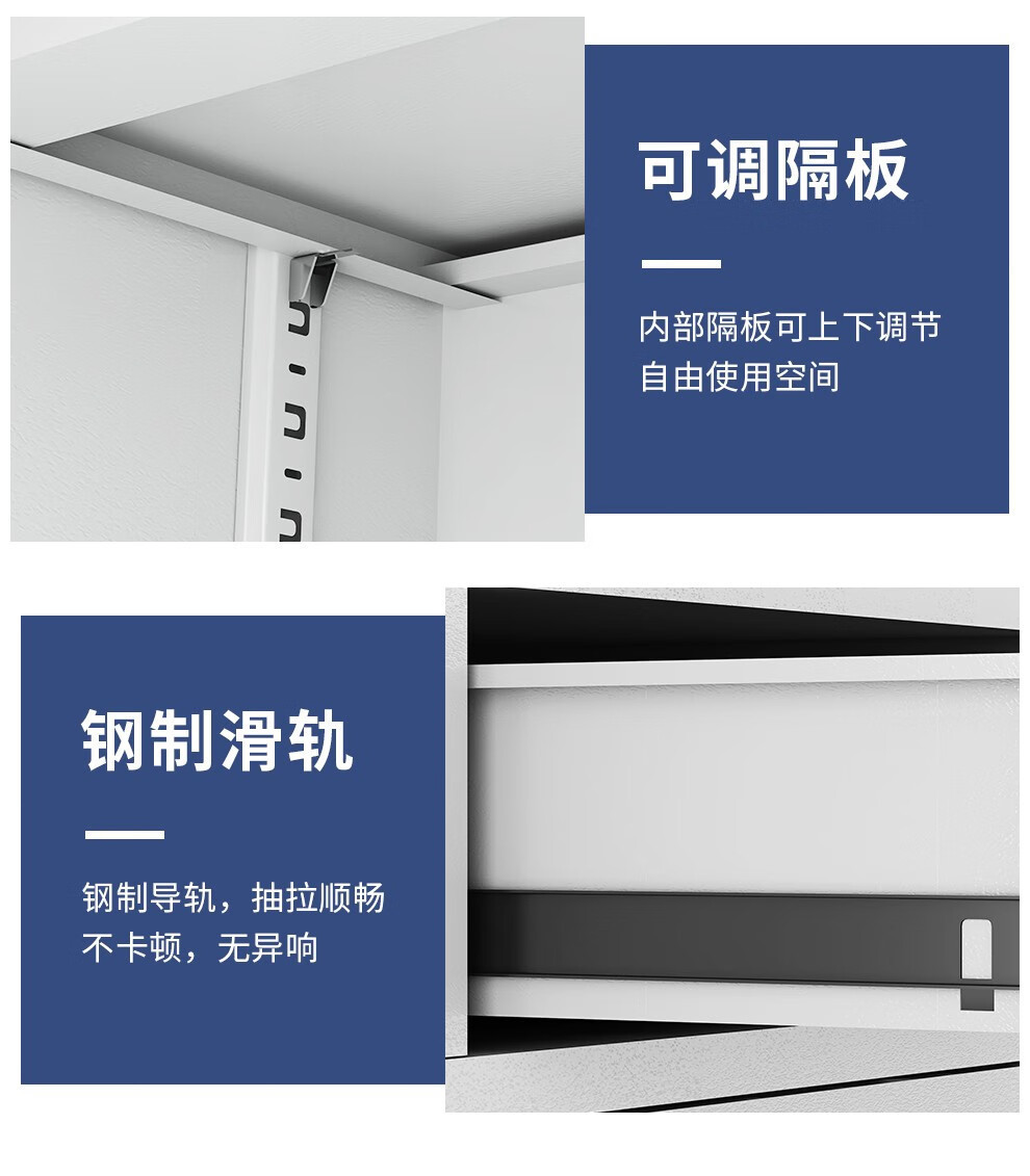 防锈带锁铁皮矮柜加厚钢制资料储物柜落地对开门抽屉式办公收纳柜