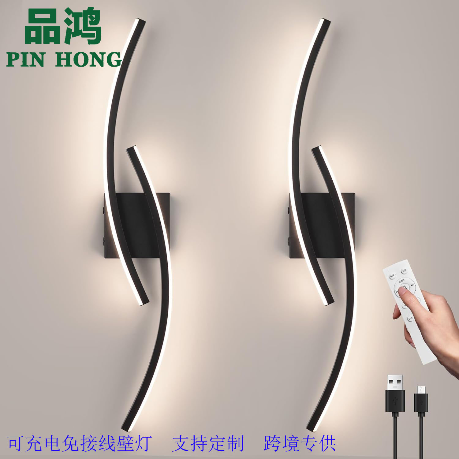 충전식 LED 벽 램프 마그네틱 후크 침실 배경 벽 창조적 인 중산 3 색 LED 고급 감각 벽 램프 에너지 절약 램프