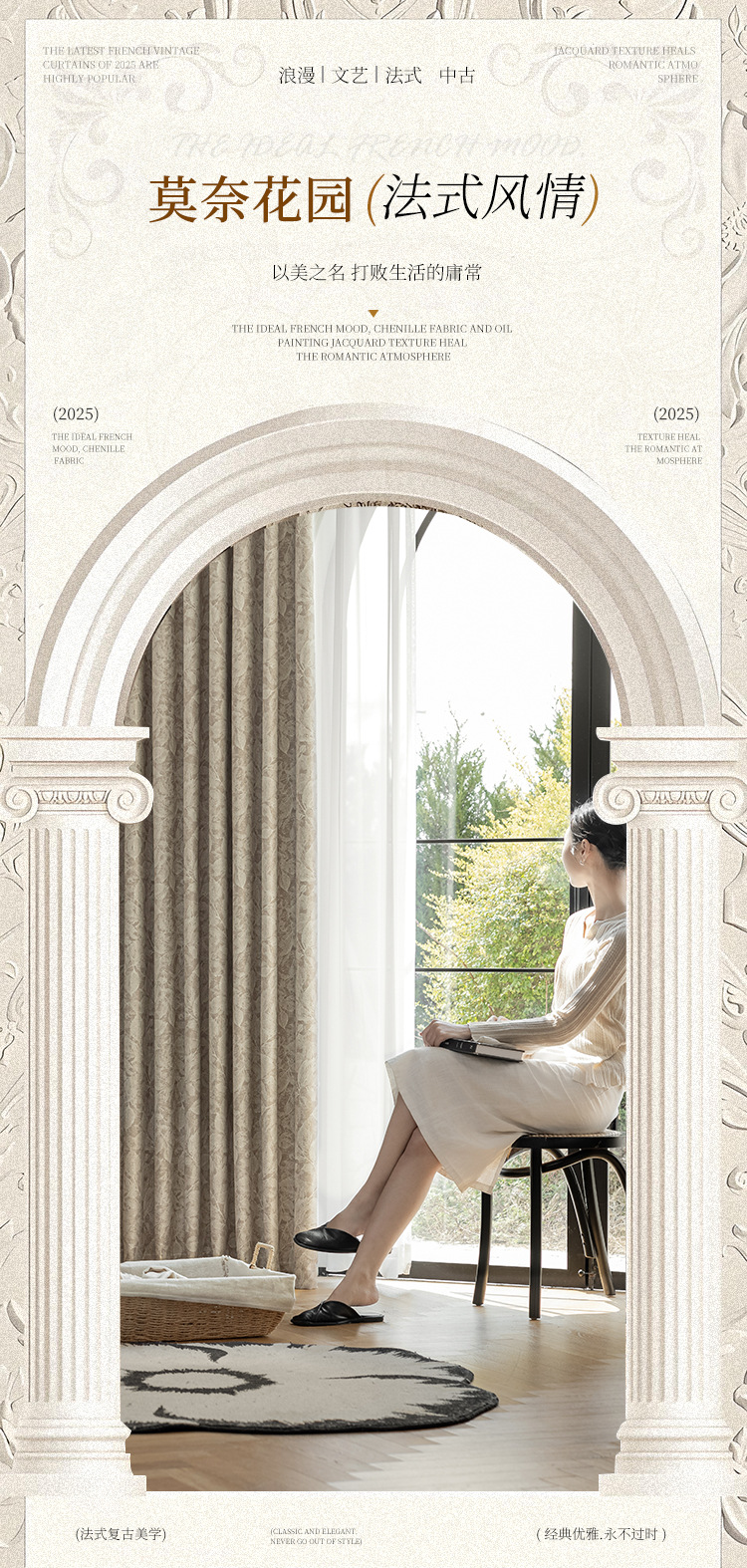2025 새로운 Shaoxing Keqiao 풀 블랙 아웃 침실 커튼 모네 가든 Chenille Jacquard 라이트 럭셔리 거실