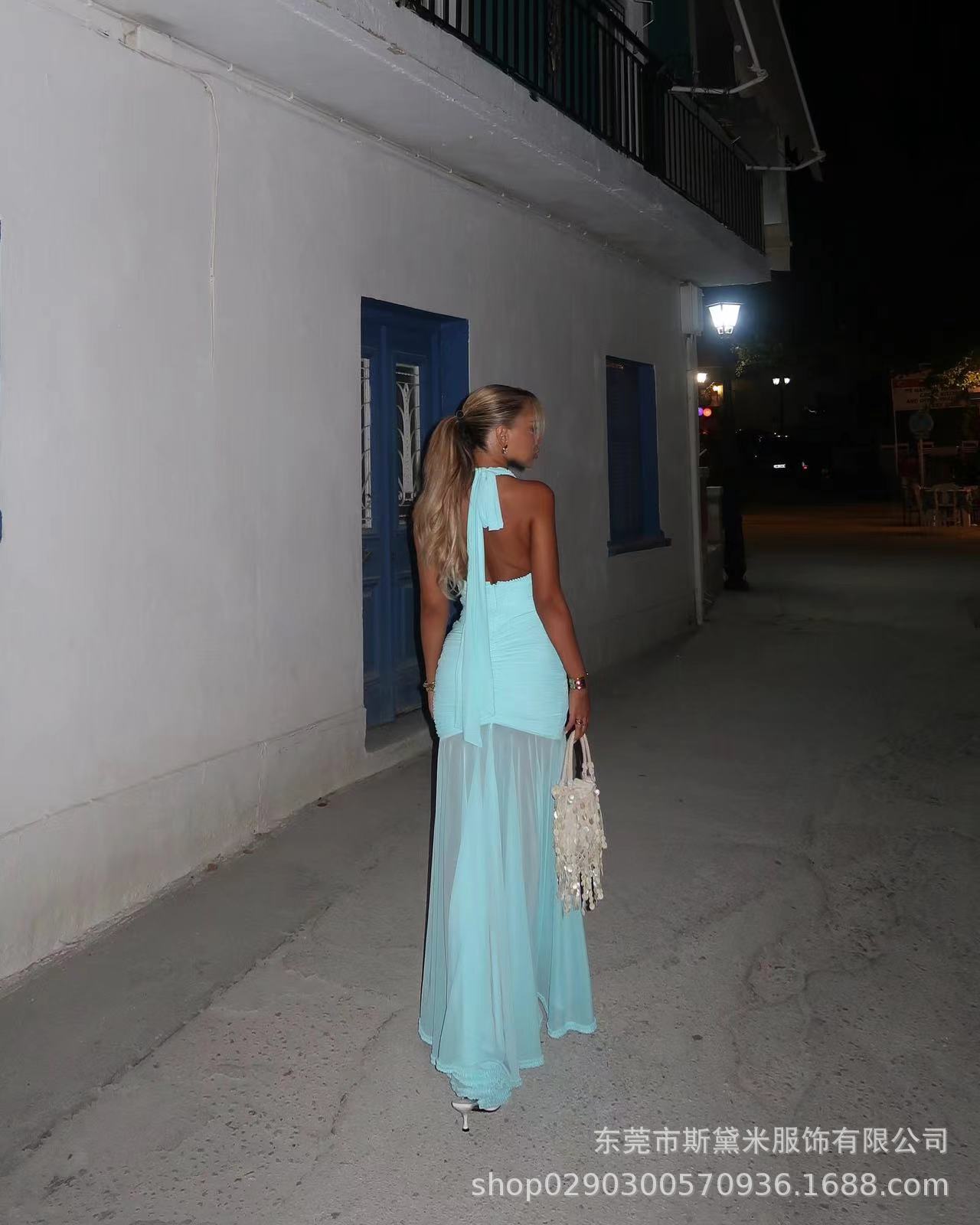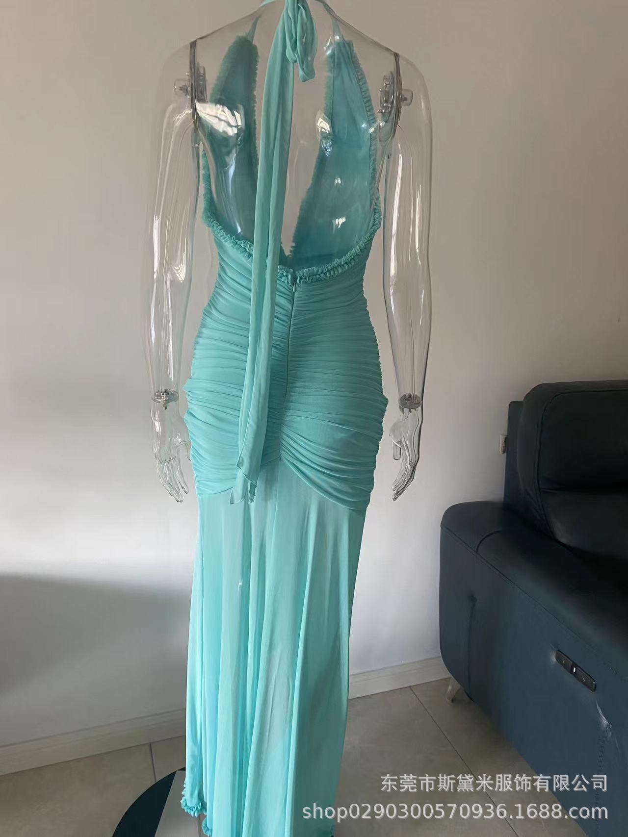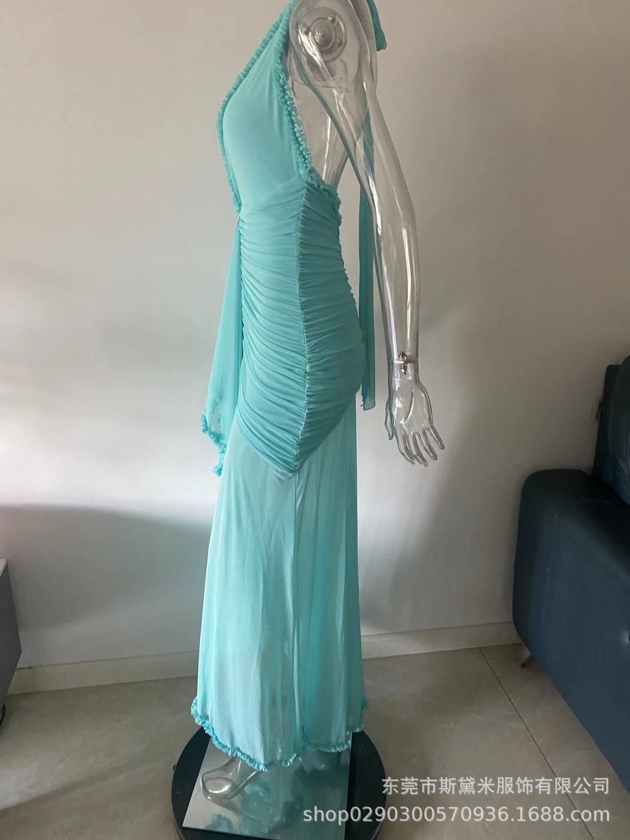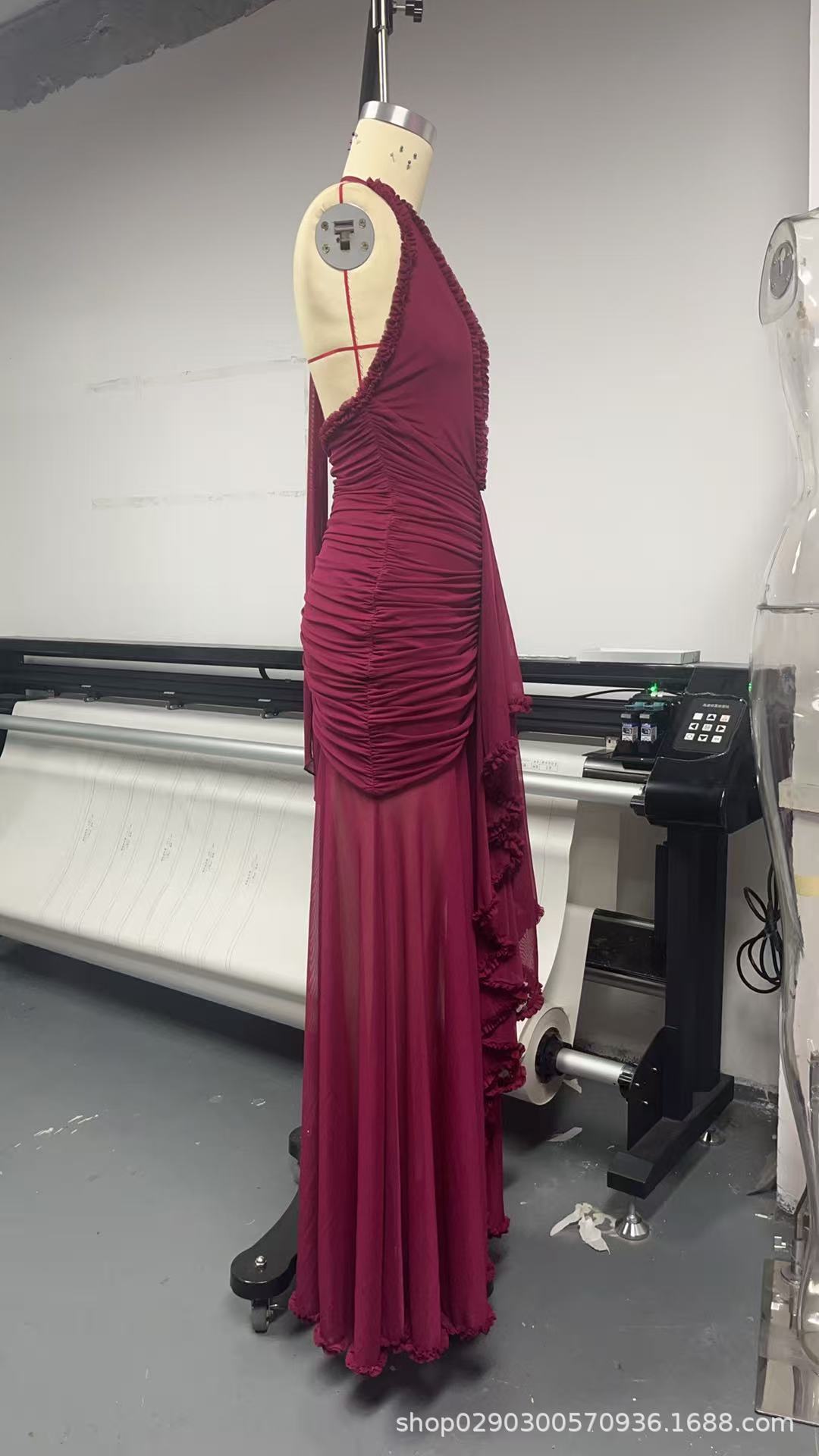SDM163 우아한 버건디 레이스 테일 플랫 스트레이트 홀터넥 딥 V 섹시 드레스 휴가 이브닝 드레스 드레스스토어 가기