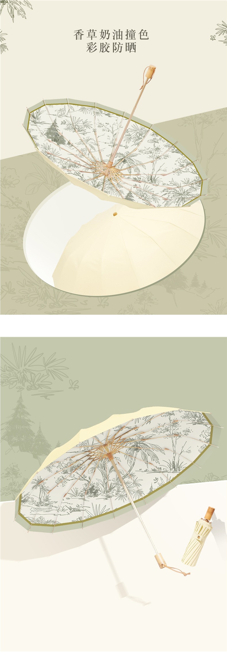 여자용 우산, 여자를 위한 멋진 복고풍 우산, 비가 오나 눈이 오나 접이식 태양 우산, 자외선 차단 및 자외선 차단 이중 우산
