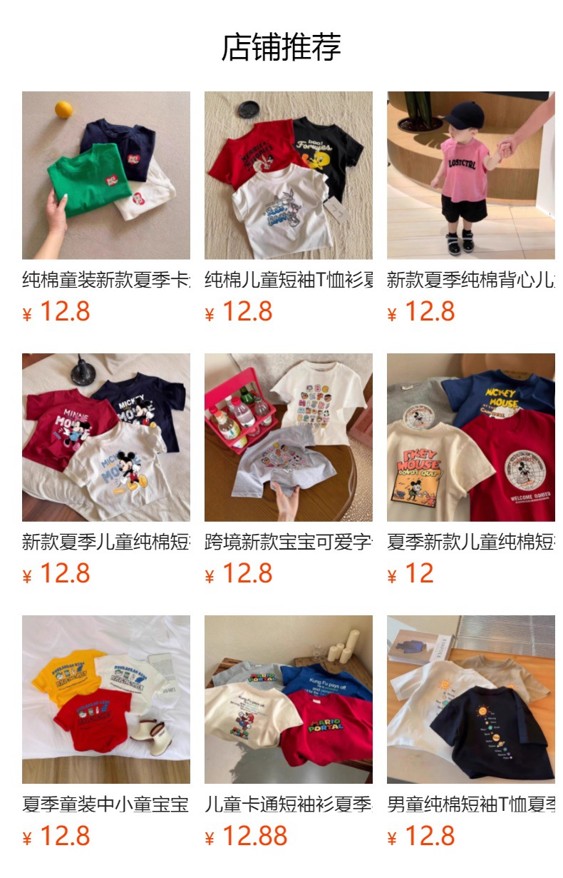 순수 코튼 어린이 반팔 티셔츠 유행 여름 새로운 스타일 만화 스타일 소년과 소녀 라운드 넥 캐주얼 프린트 탑스토어 가기