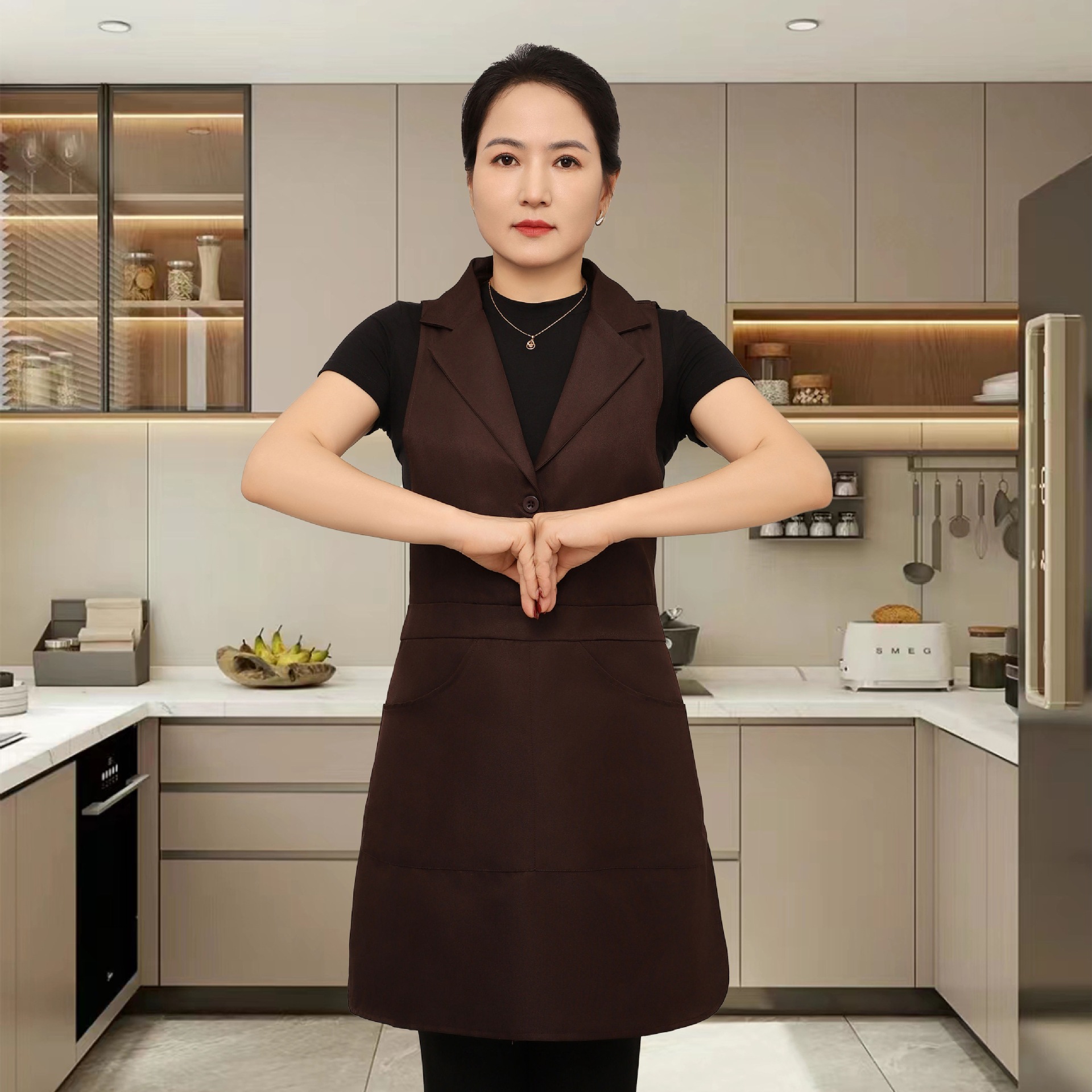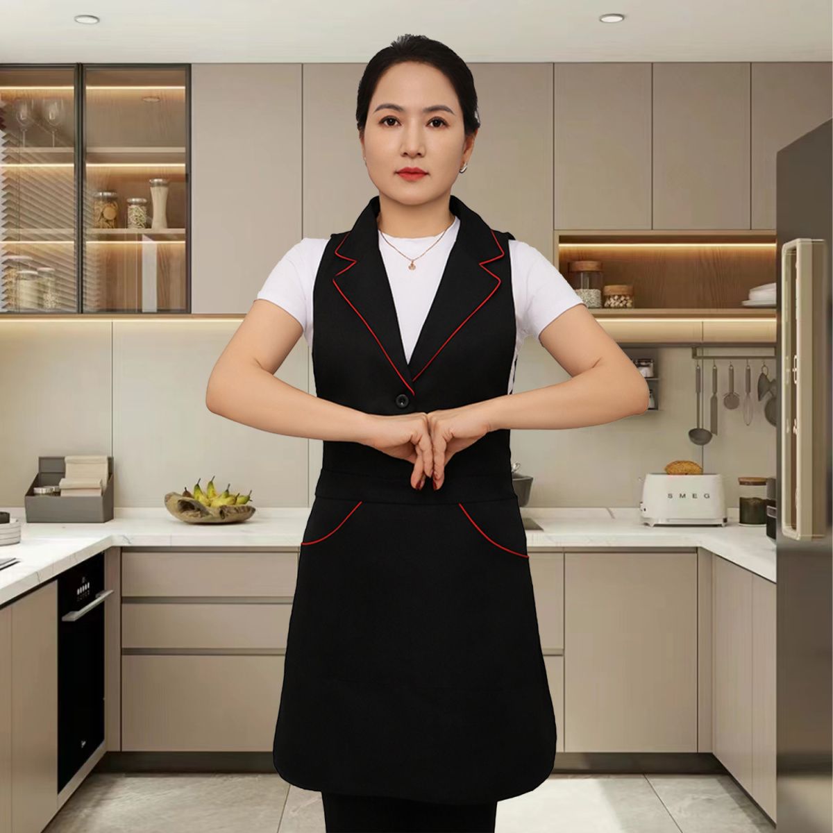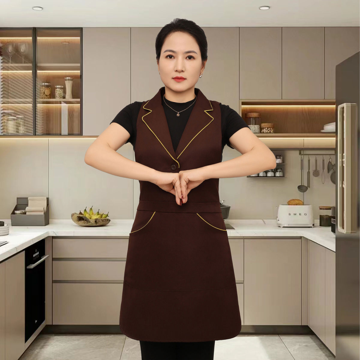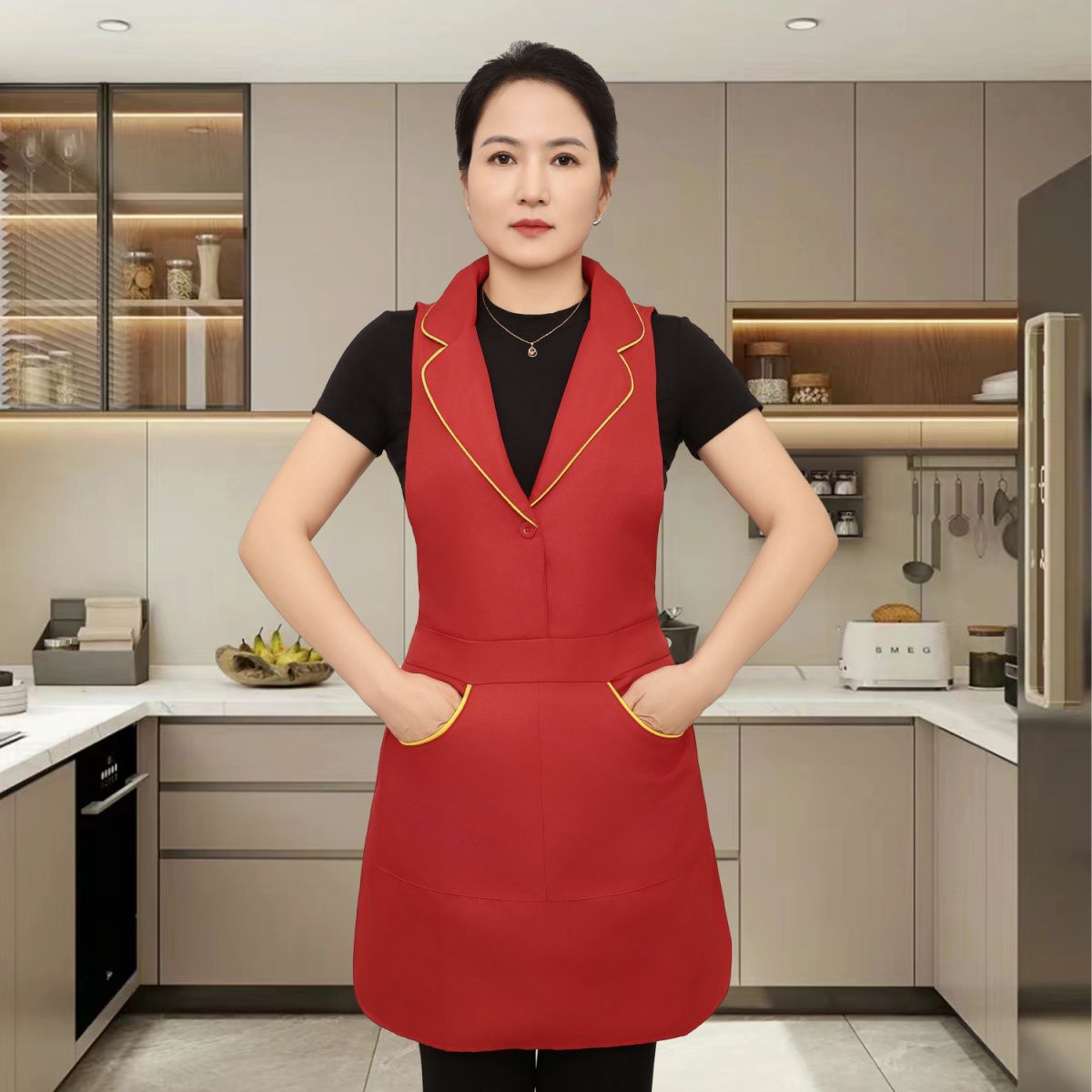 새로운 스타일의 프린지 슈트 라펠 앞치마 주방 홈 레스토랑 작업복 케이터링 남성과 여성을위한 고급 네일 살롱 앞치마