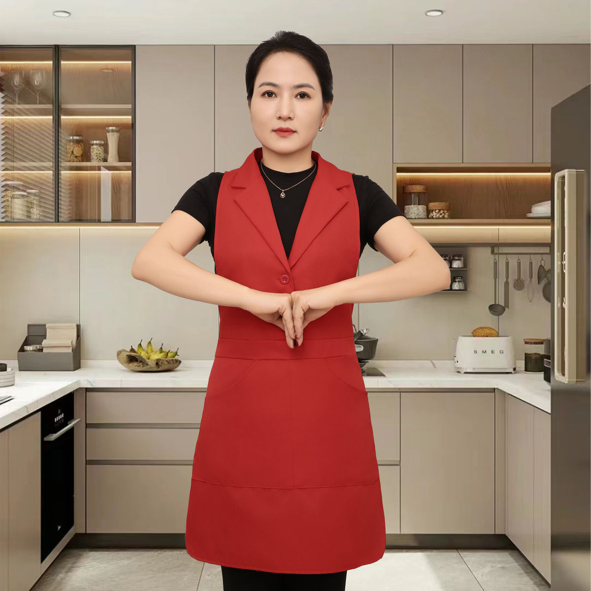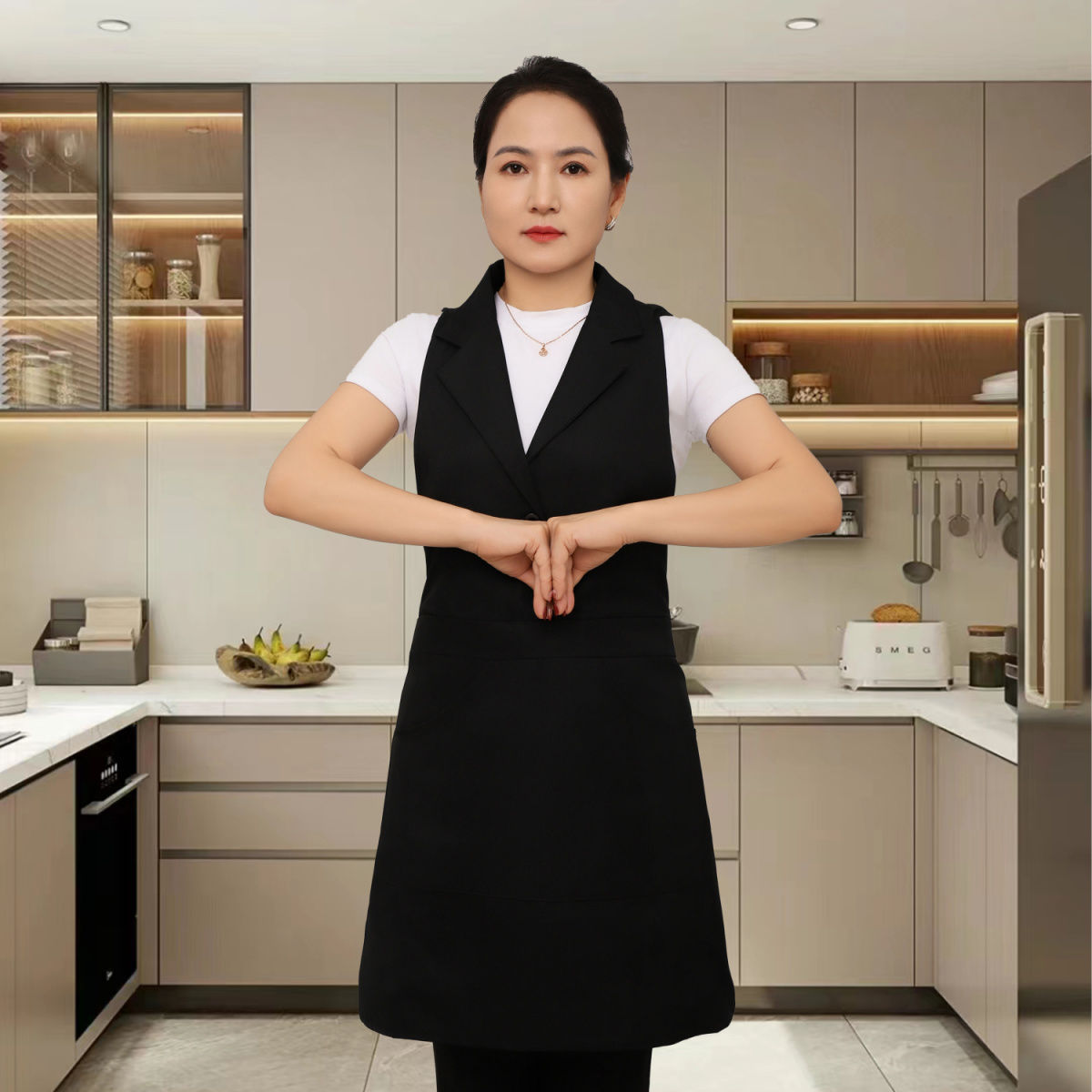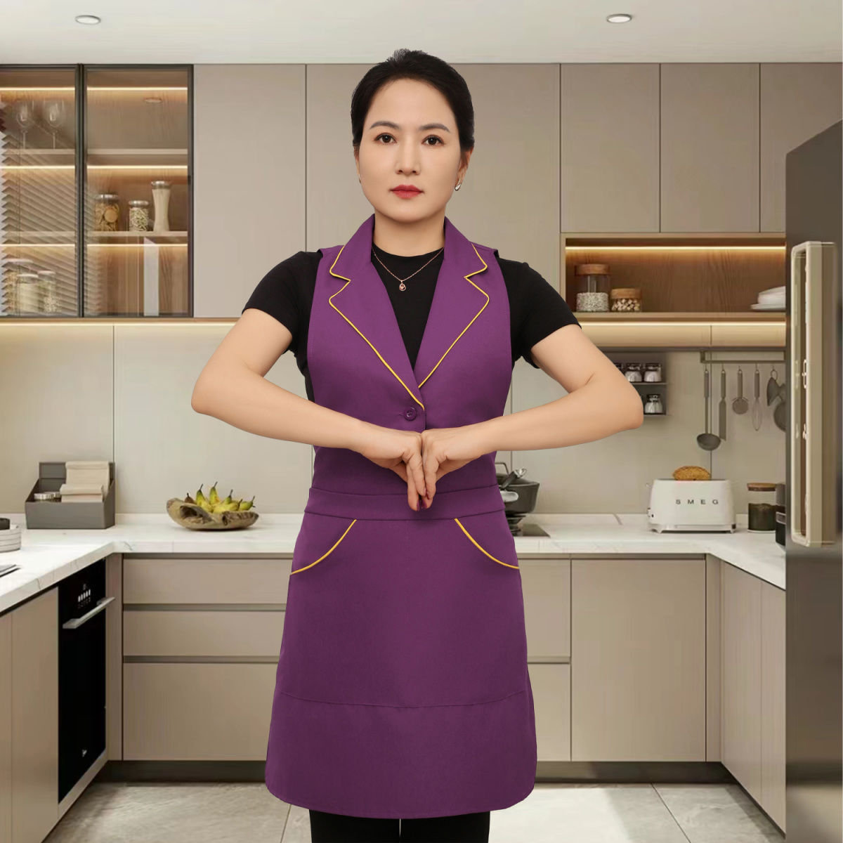 새로운 스타일의 프린지 슈트 라펠 앞치마 주방 홈 레스토랑 작업복 케이터링 남성과 여성을위한 고급 네일 살롱 앞치마