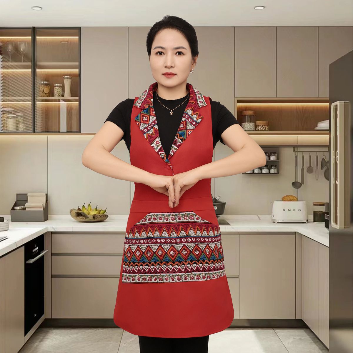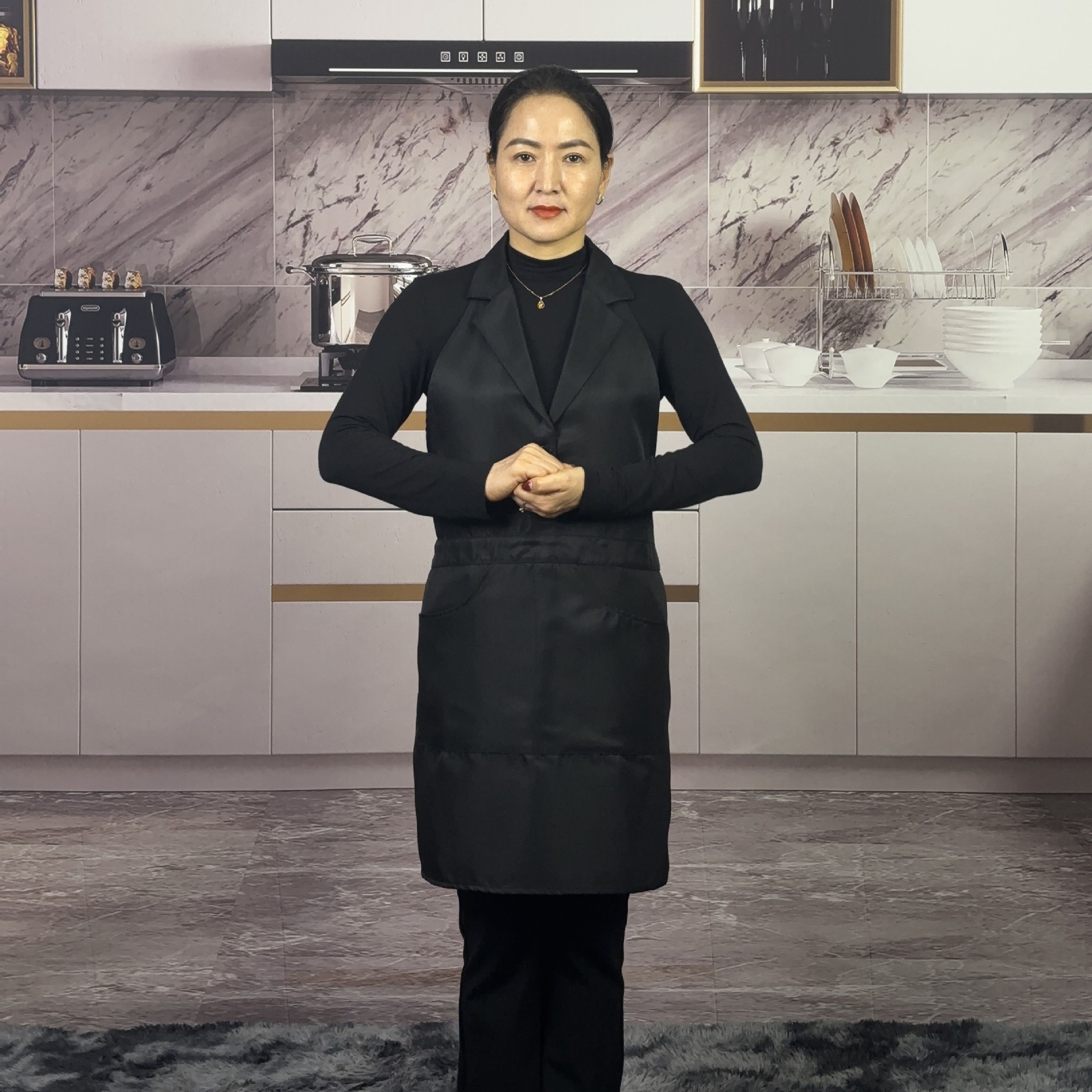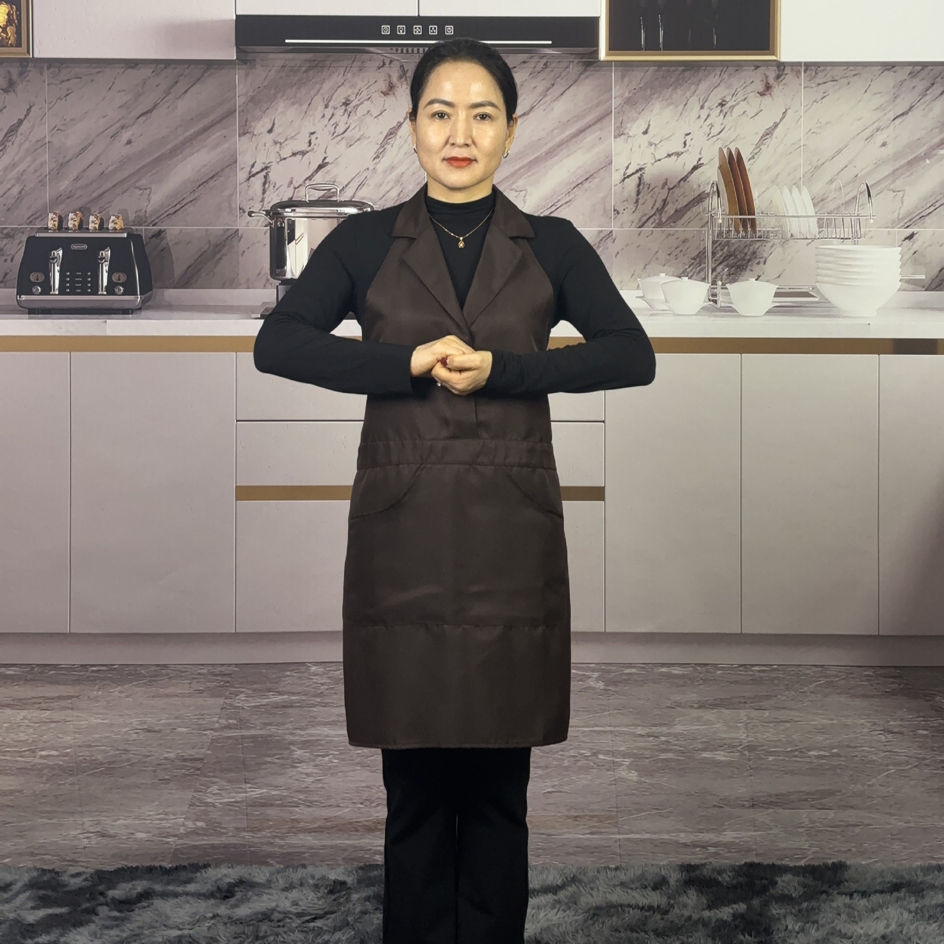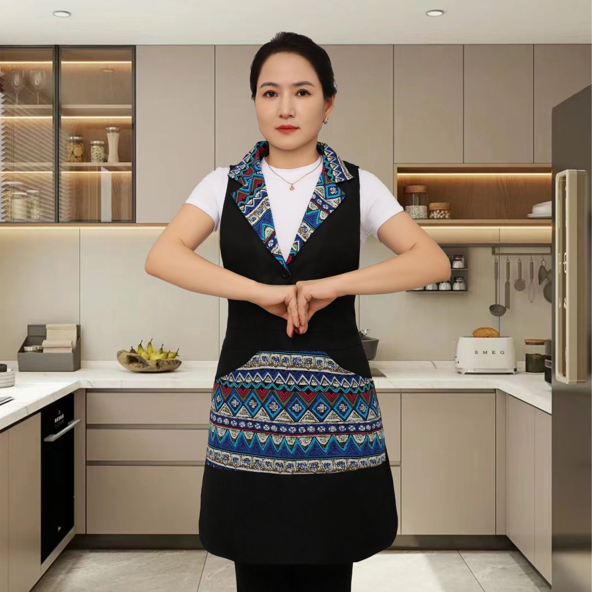 새로운 스타일의 프린지 슈트 라펠 앞치마 주방 홈 레스토랑 작업복 케이터링 남성과 여성을위한 고급 네일 살롱 앞치마