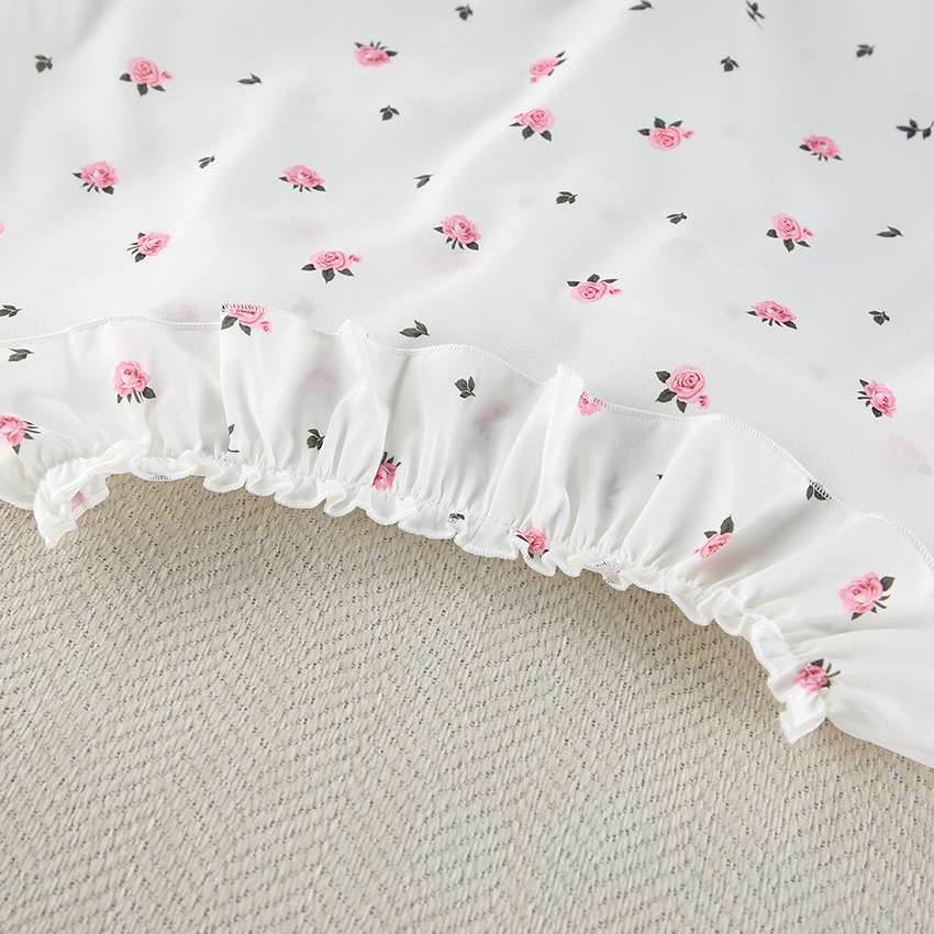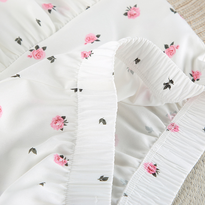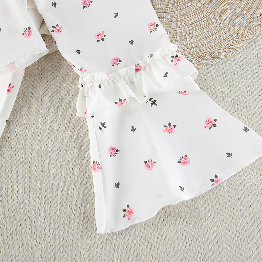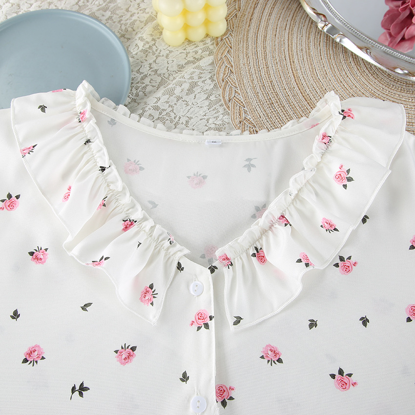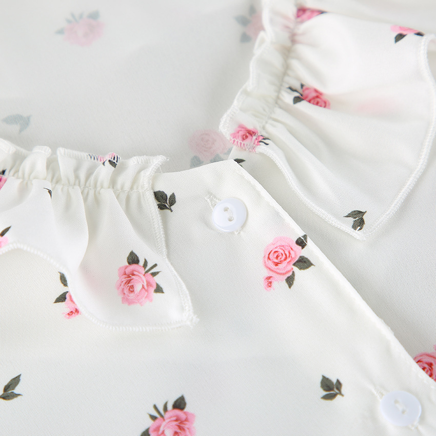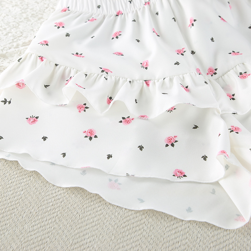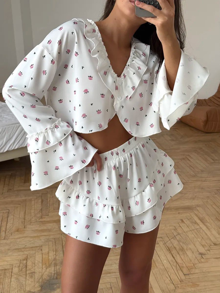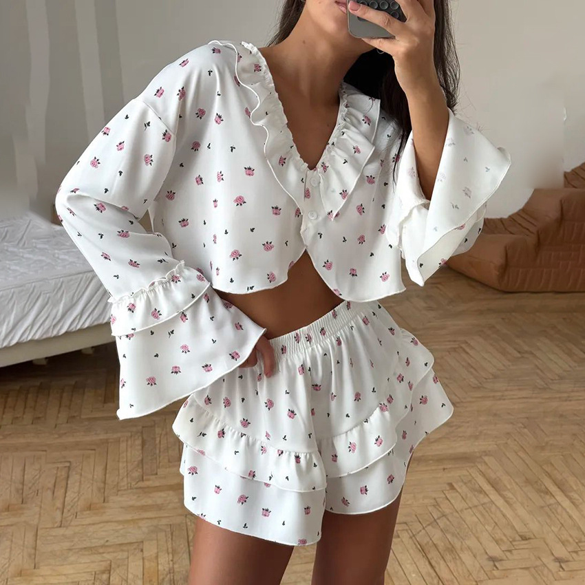 2026 유럽 및 미국 스타일의 하트 프린트, 러플 장식, 편안하고 통기성 좋은 긴팔 반바지 잠옷 세트, 해외 직구, 여성 홈웨어 전용
