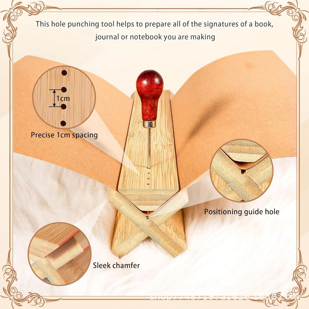 대나무 바인더 책 바인딩 키트 책 애호가 펀치 홀더 파일 바인더 바인딩 도구