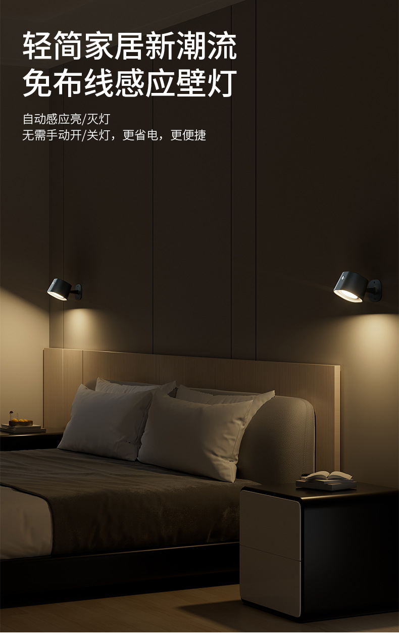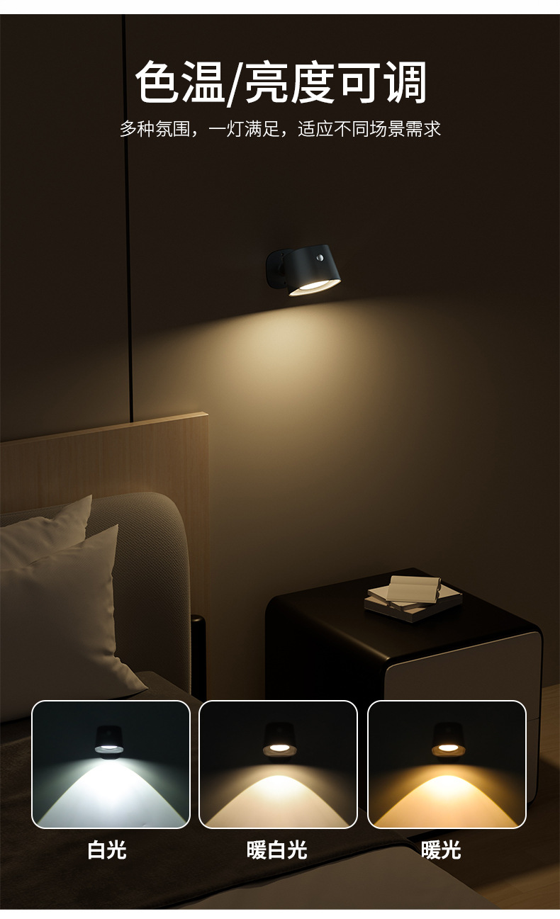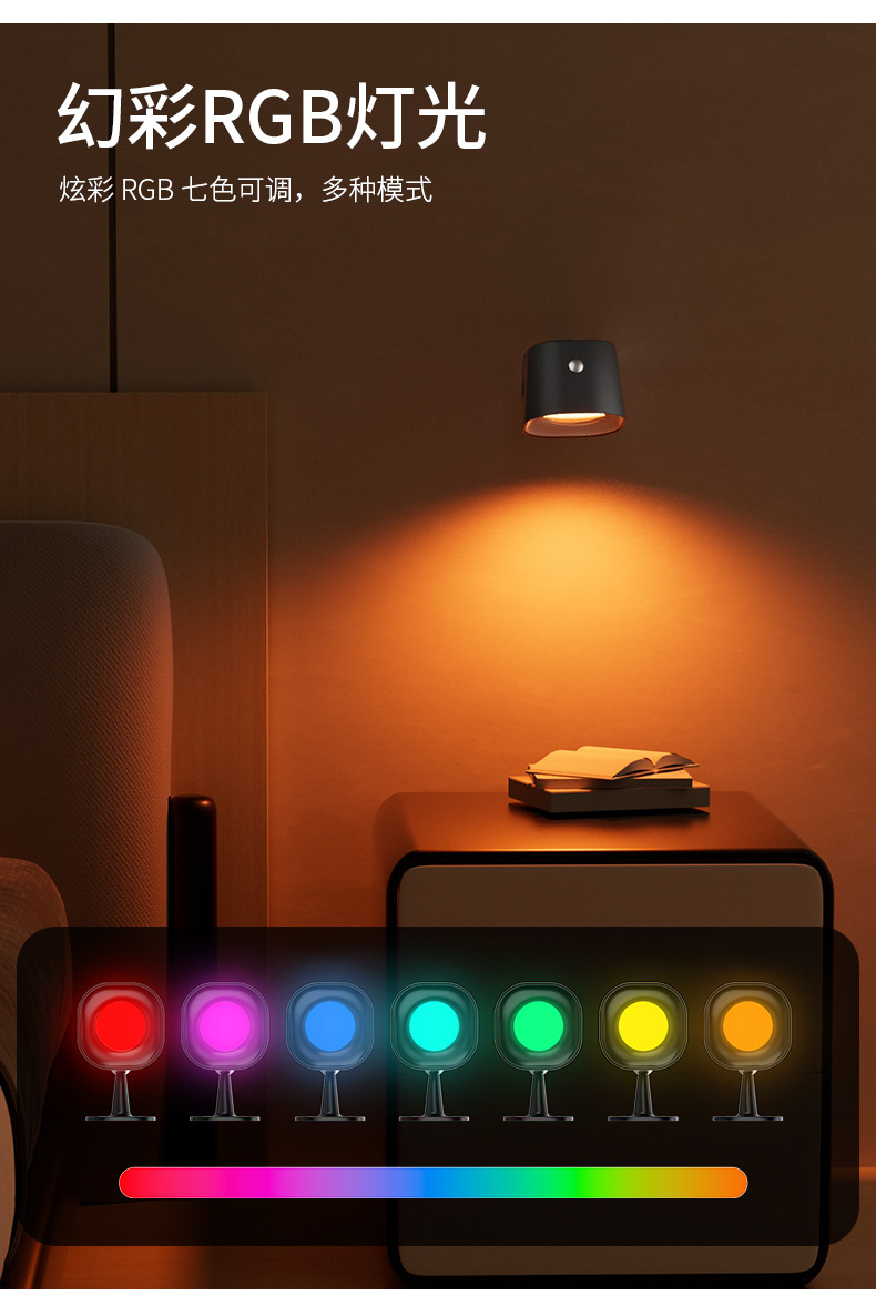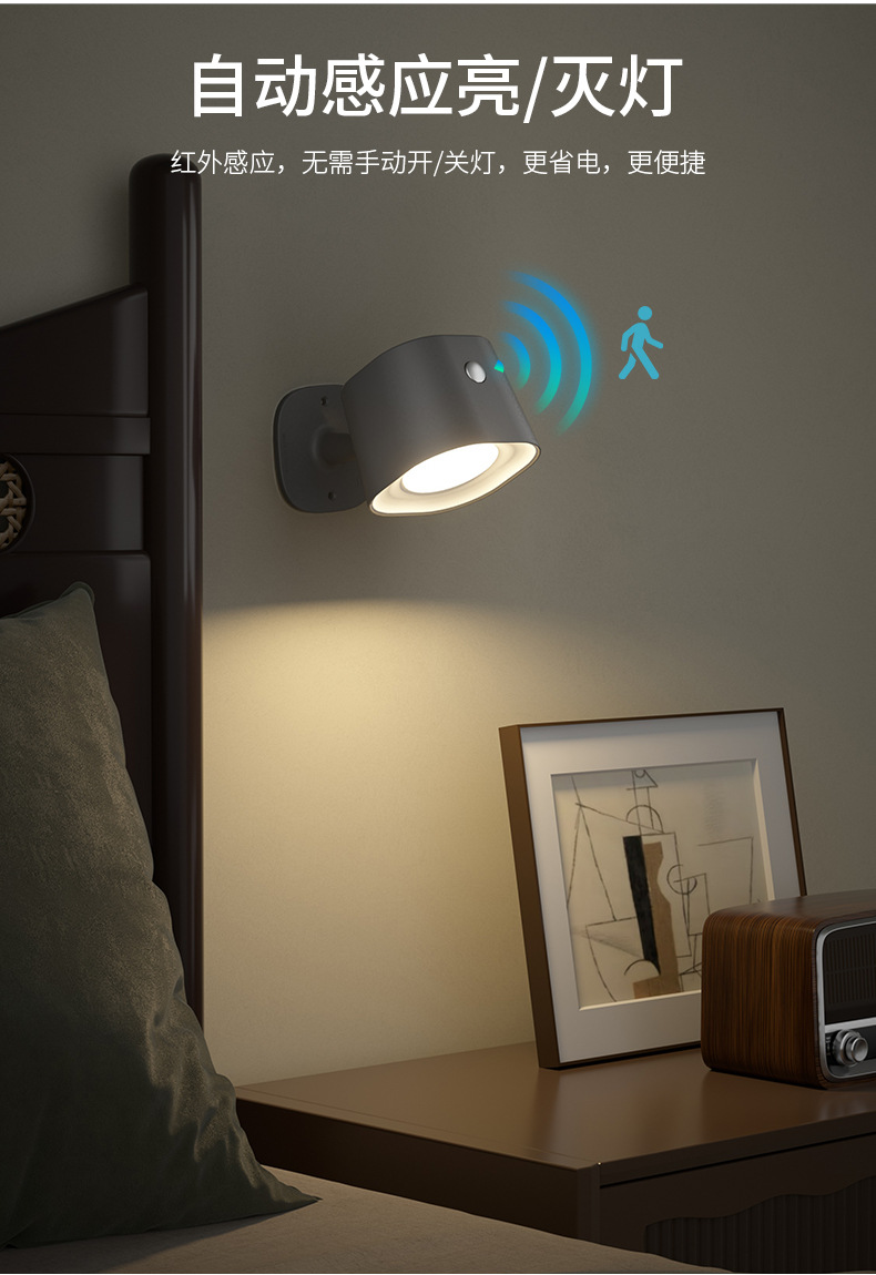 간단한 지능형 유도 벽 램프 RGB 비 펀치 충전 조명 침실 침대 옆 램프 독서 램프 안뜰 벽 램프