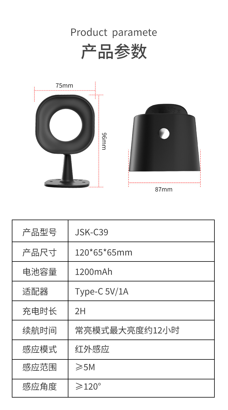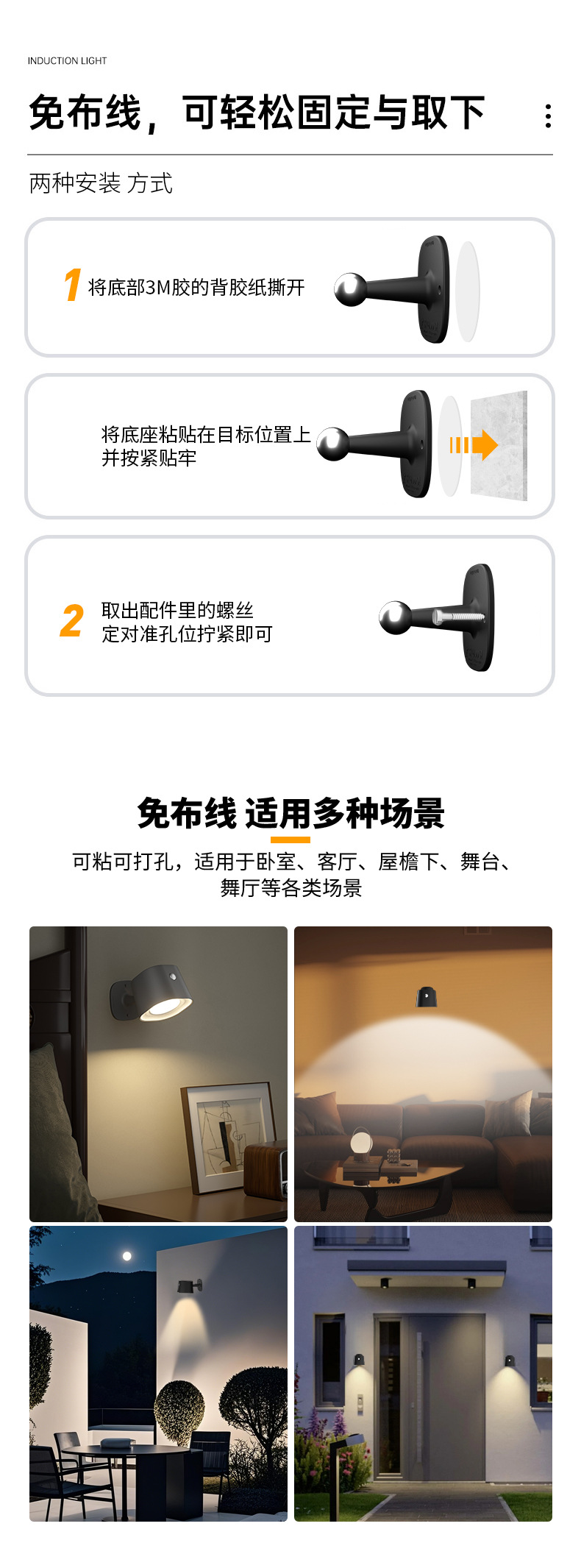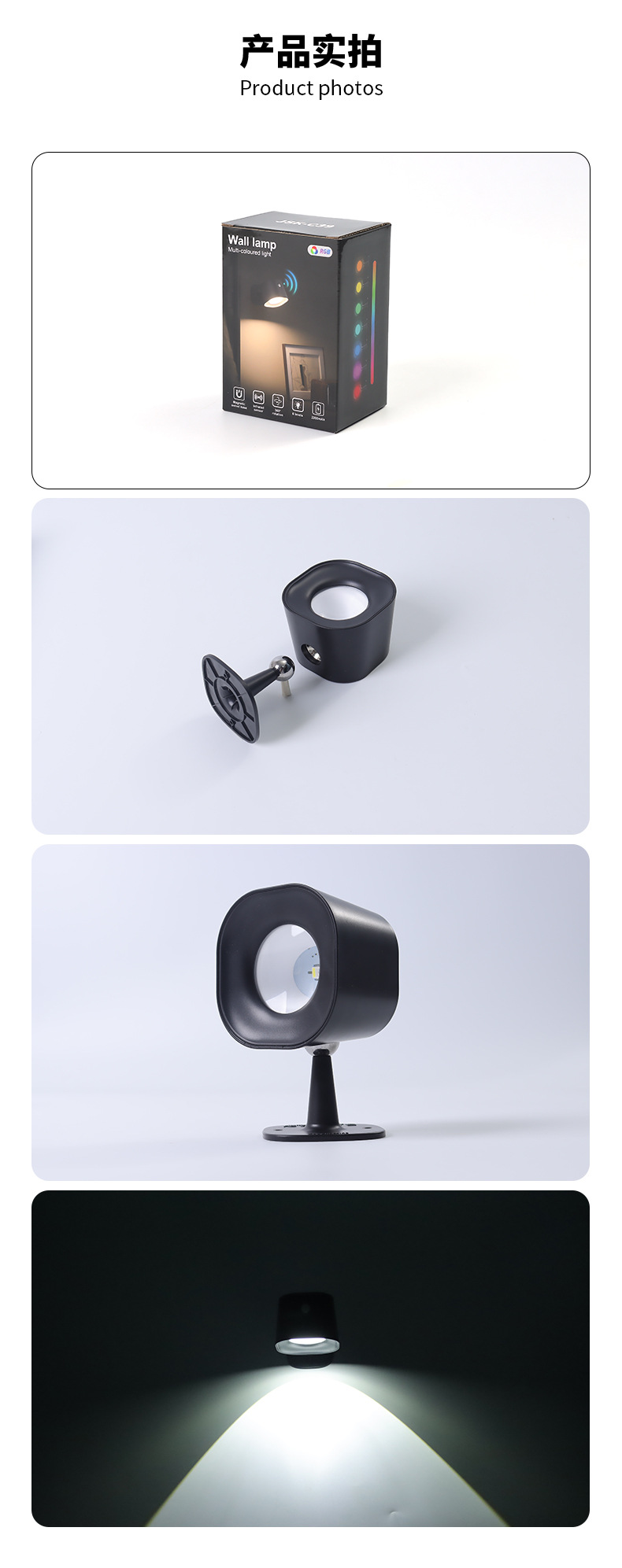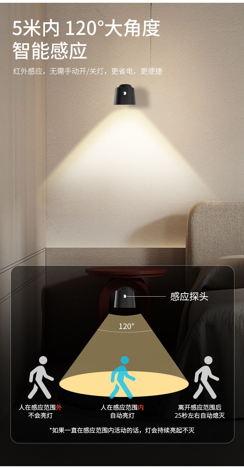간단한 지능형 유도 벽 램프 RGB 비 펀치 충전 조명 침실 침대 옆 램프 독서 램프 안뜰 벽 램프