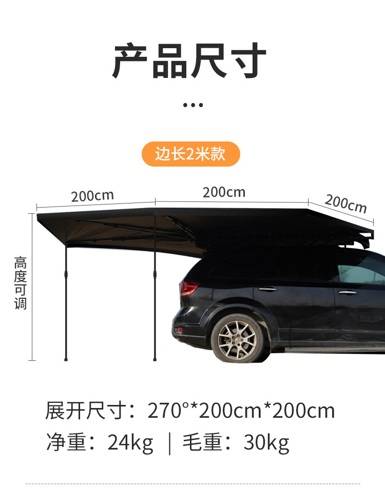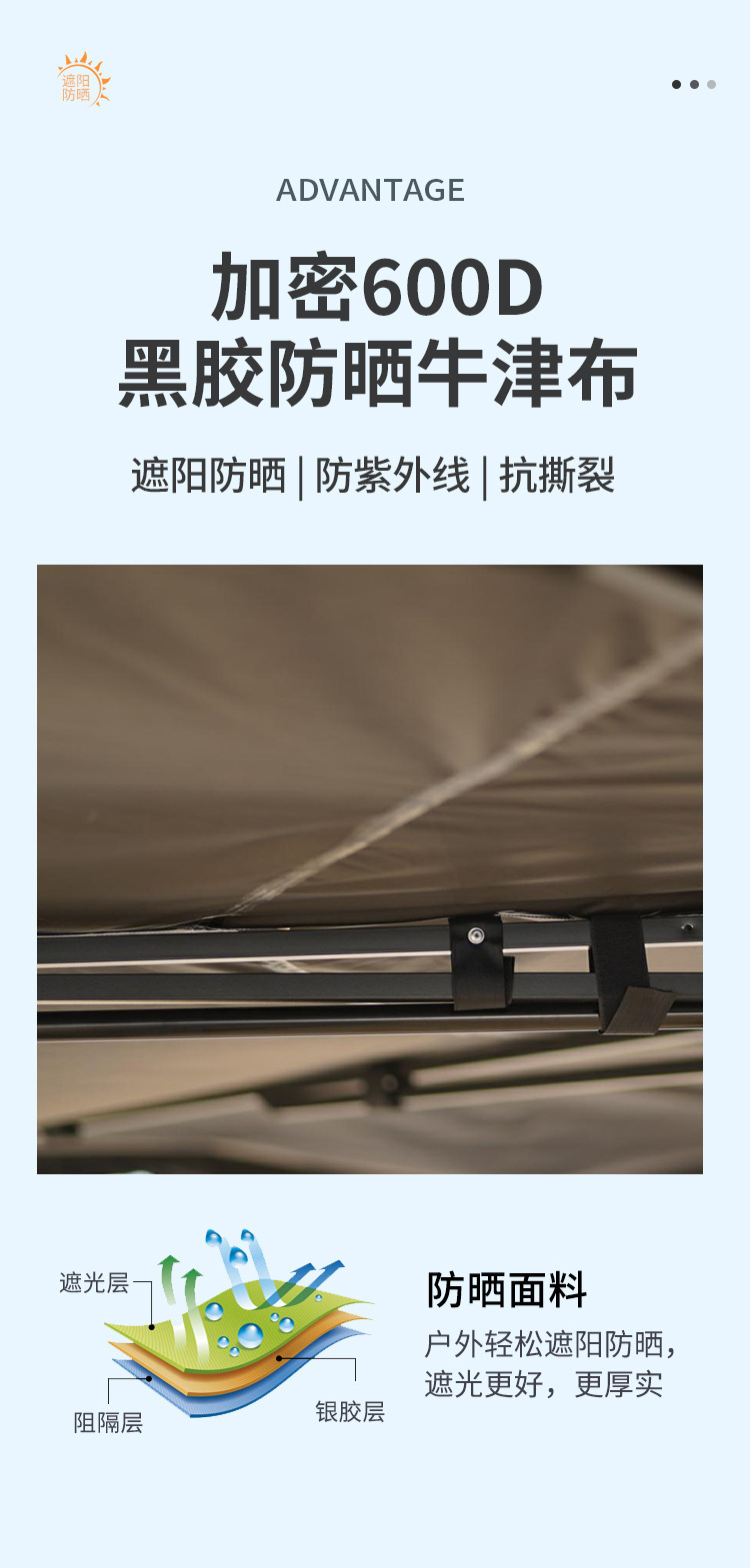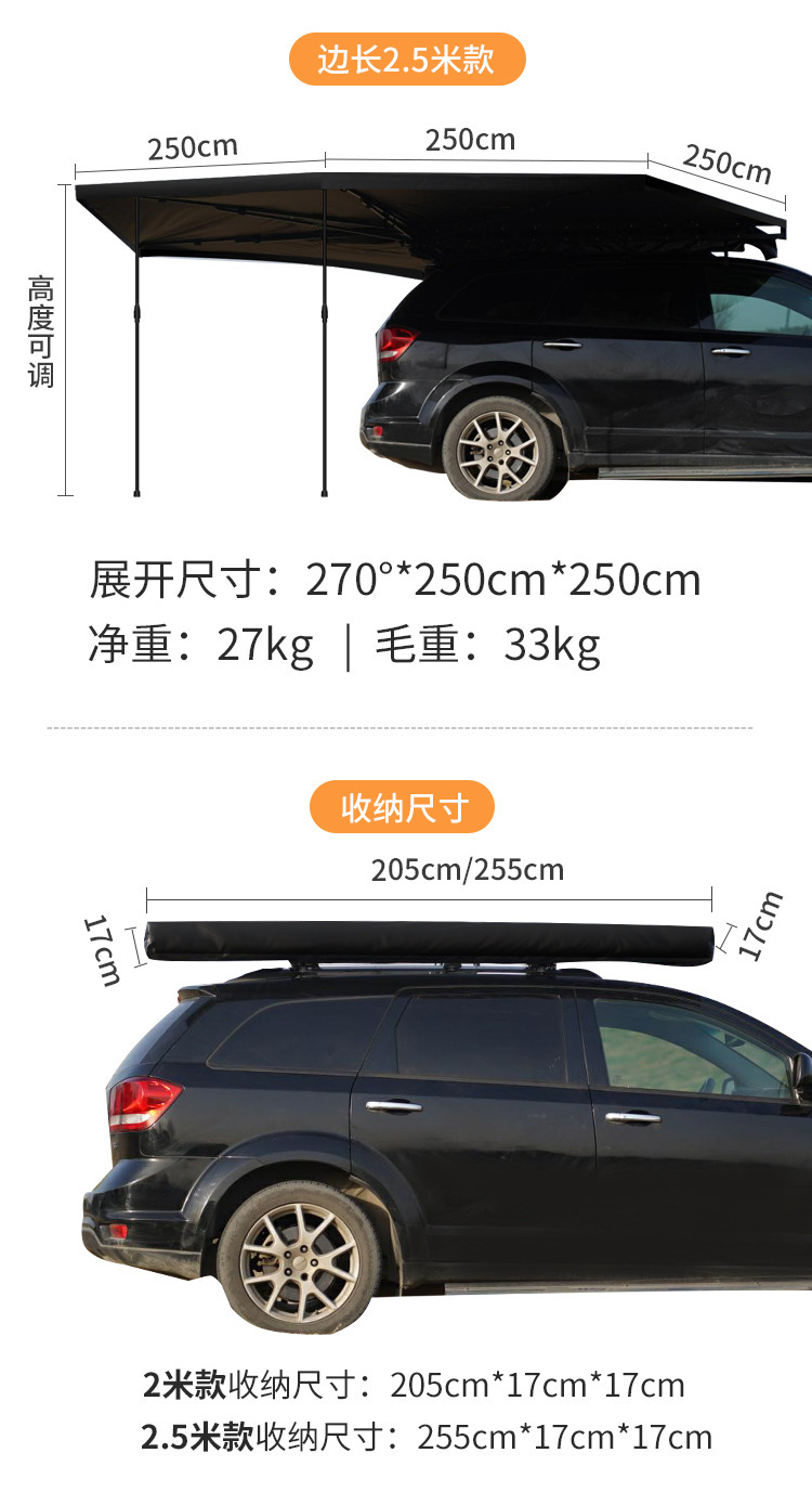 반자동 알루미늄 합금 차량용 측면 차양막, 완전 자동 알루미늄 텐트, 차량용 캠핑용 루프탑 텐트, 야외용 레인 캐노피