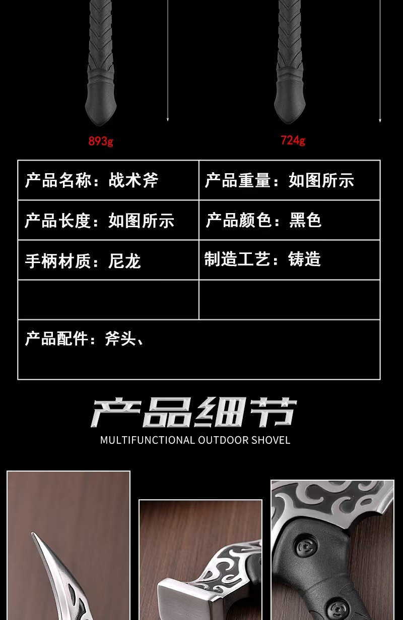 야외 다기능 산 개방형 전술 도끼 고 탄소강 망치 도끼 야외 캠핑 비상 자기 방어 생존 도끼 공장스토어 가기