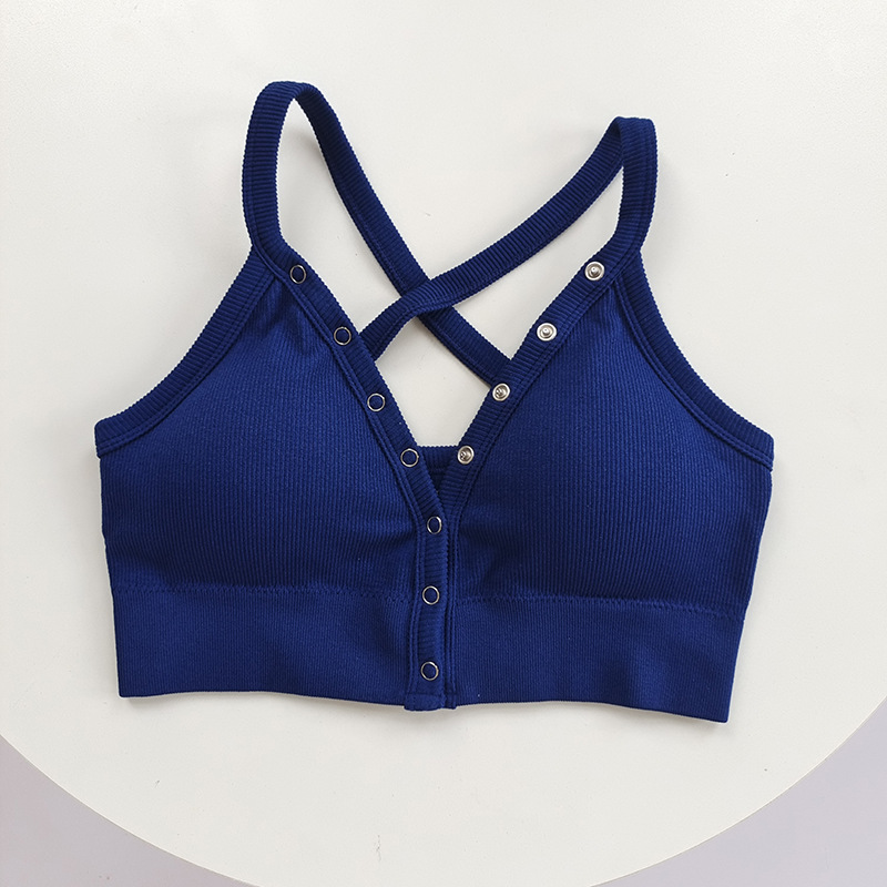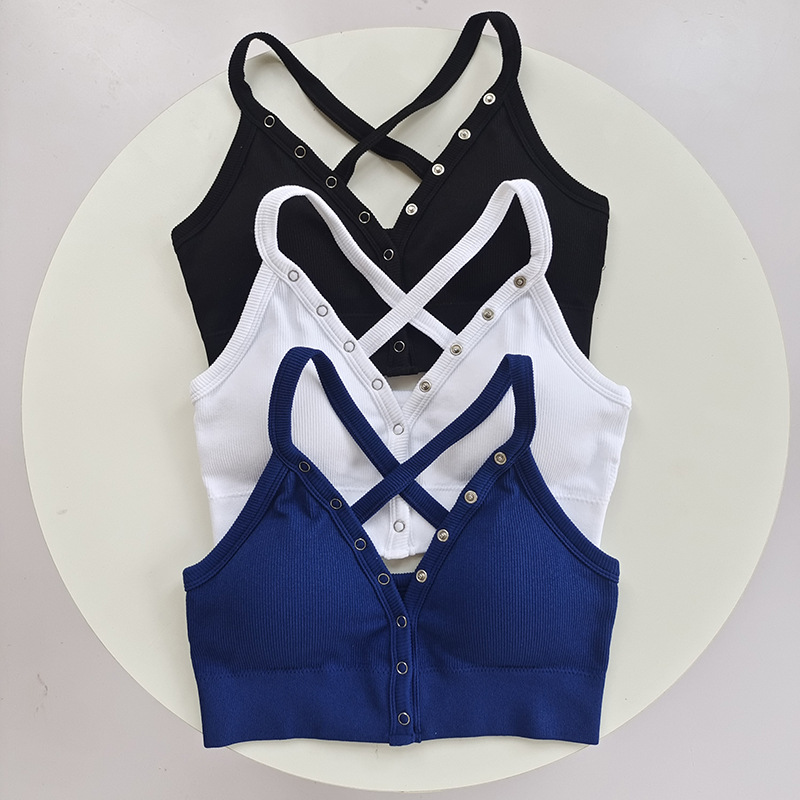 섹시한 크로스 아름다운 등 스레드 스포츠 브라 가슴 패드 포함 V 넥 조절 가능한 숨겨진 버클 여성용 원활한 피트니스 요가 브라스토어 가기