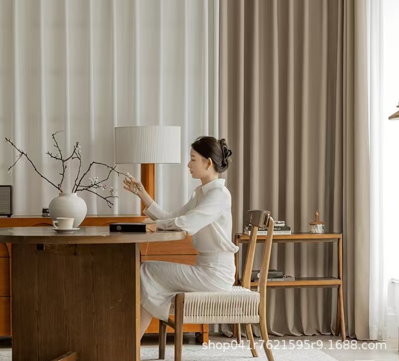연기 그림자 커튼 현대 간단한 단색 면 린넨 거실 침실 호텔 학교 공학 천 커튼