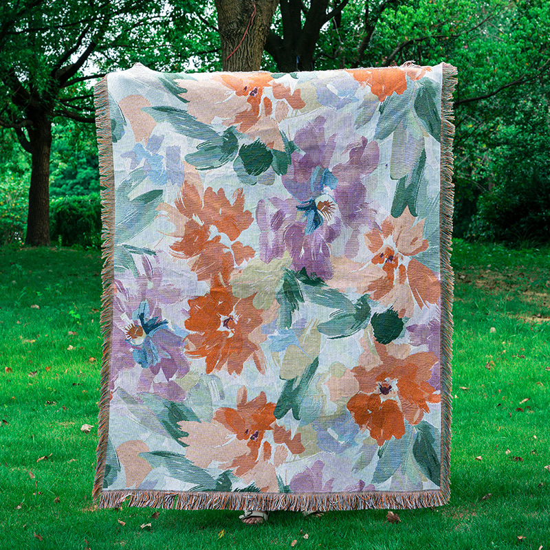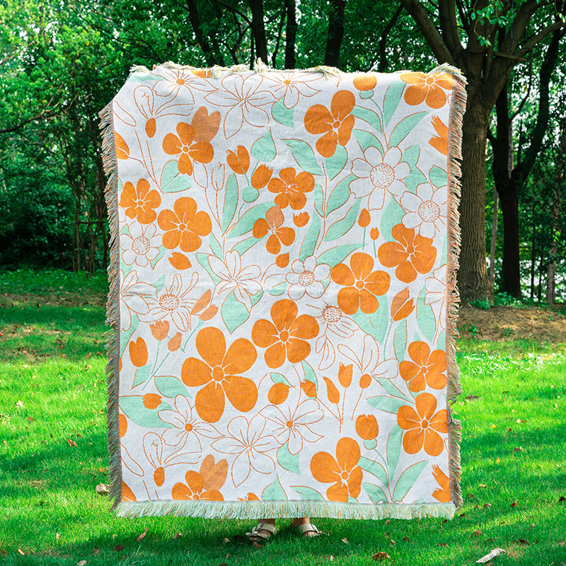 국경 라인 담요 피크닉 담요 꽃 꽃 라인 담요 도매 태피스트리 담요 자카드 짠 담요 소파 타월