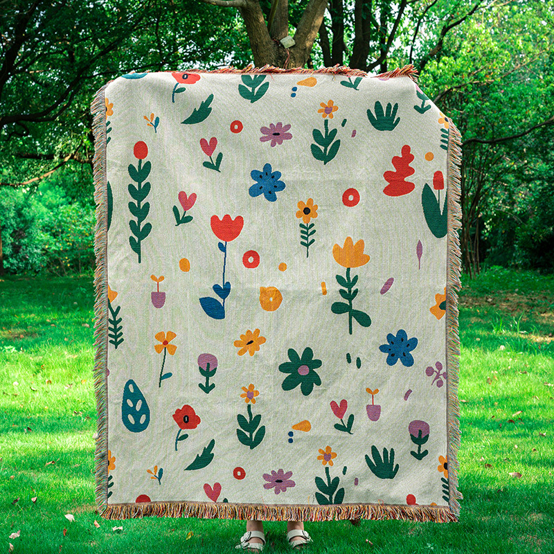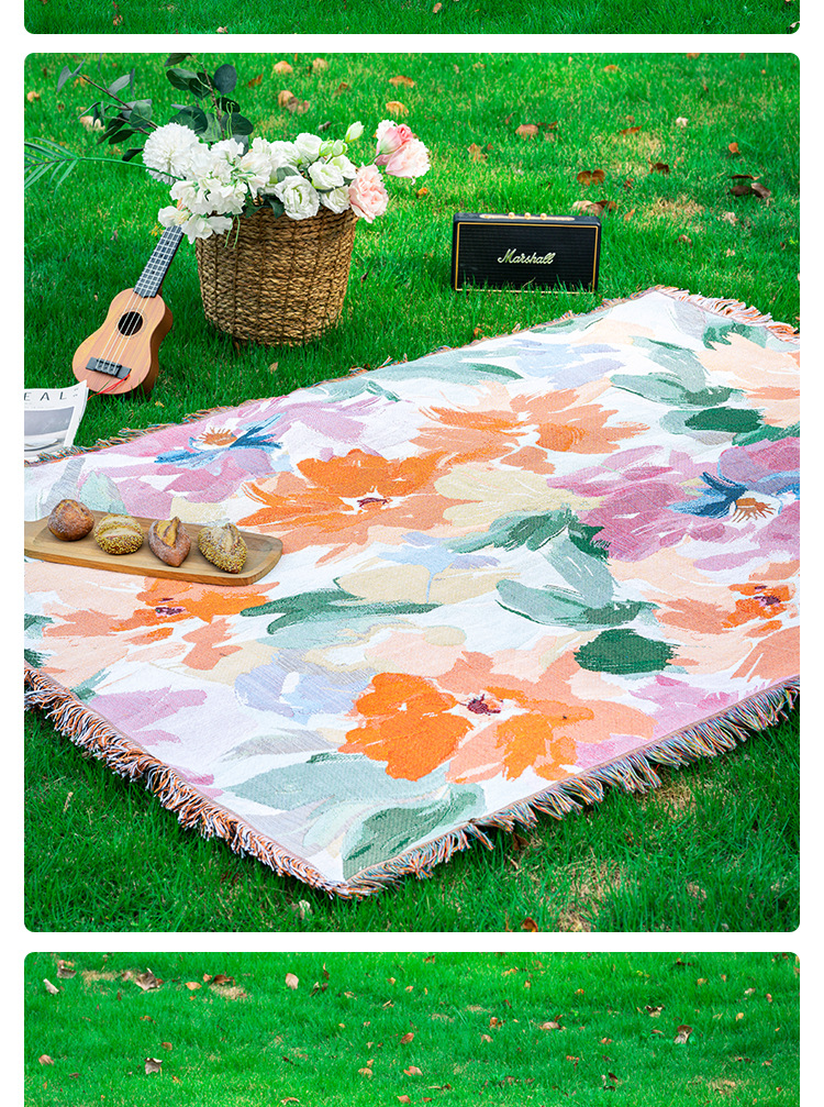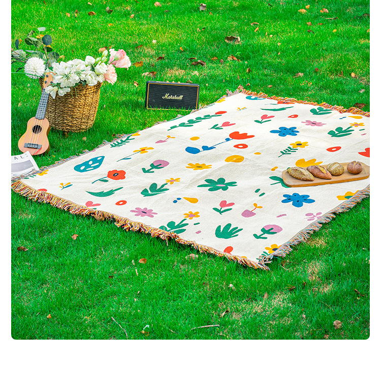 국경 라인 담요 피크닉 담요 꽃 꽃 라인 담요 도매 태피스트리 담요 자카드 짠 담요 소파 타월스토어 가기