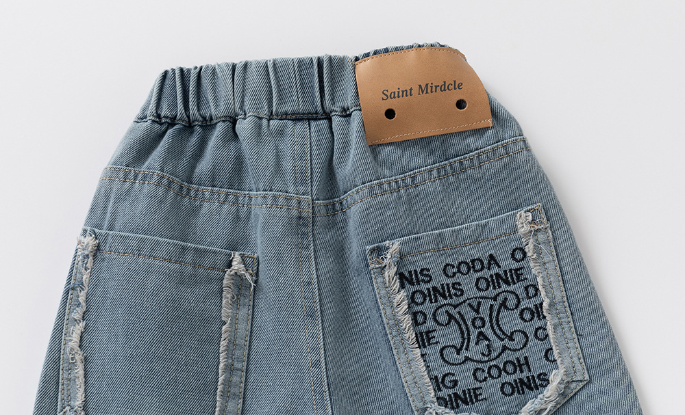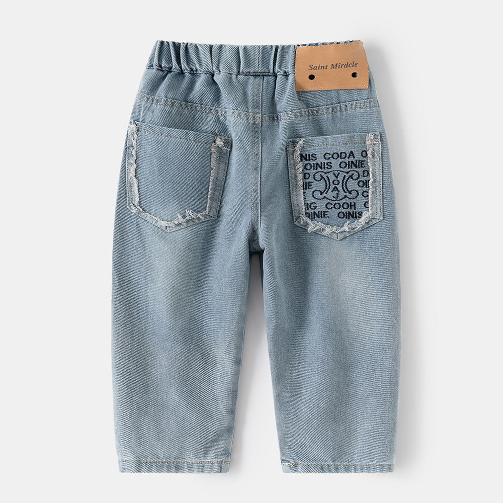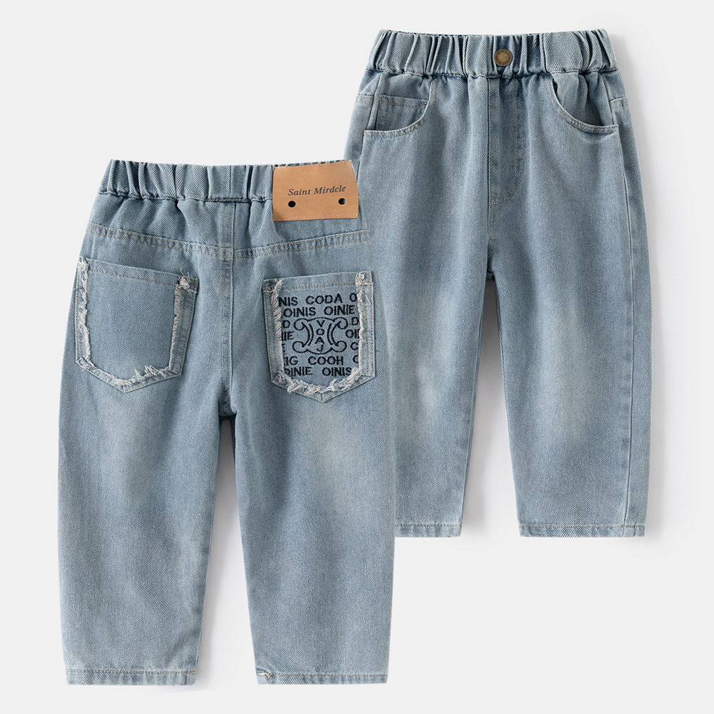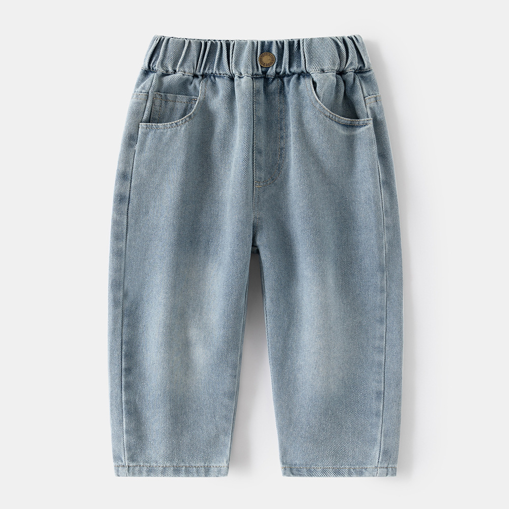 소년과 아동용 데님 바지 2025 봄, 가을 새로운 스타일 아동용 한국식 루즈한 아우터 데님 바지스토어 가기