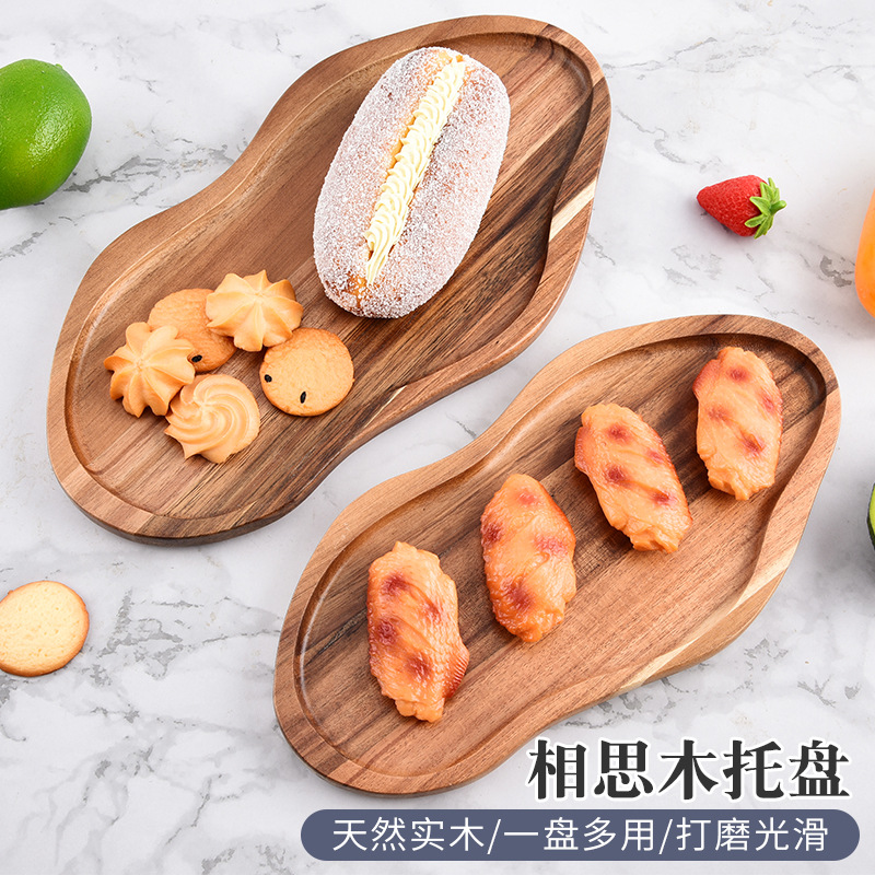 아카시아 나무 트레이 땅콩 유형 복고풍 스타일 단단한 나무 창조적 인 멜론과 과일 접시 커피 접시 스낵 접시 제조 업체 재고