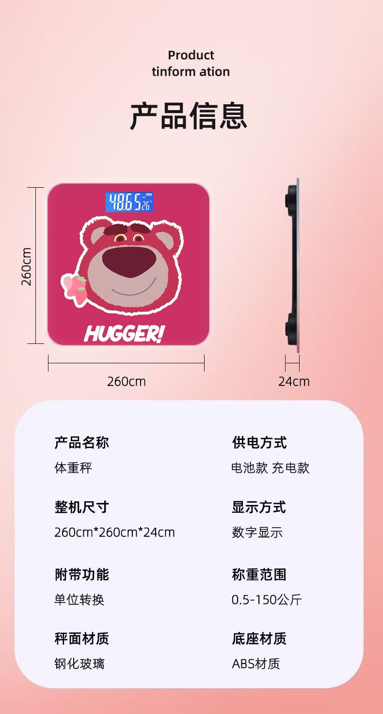 만화 인터넷 빨간색 전자 계량 규모 무게 USB 충전식/배터리 스마트 바디 스케일 남성과 여성 가정용 매일 사용스토어 가기
