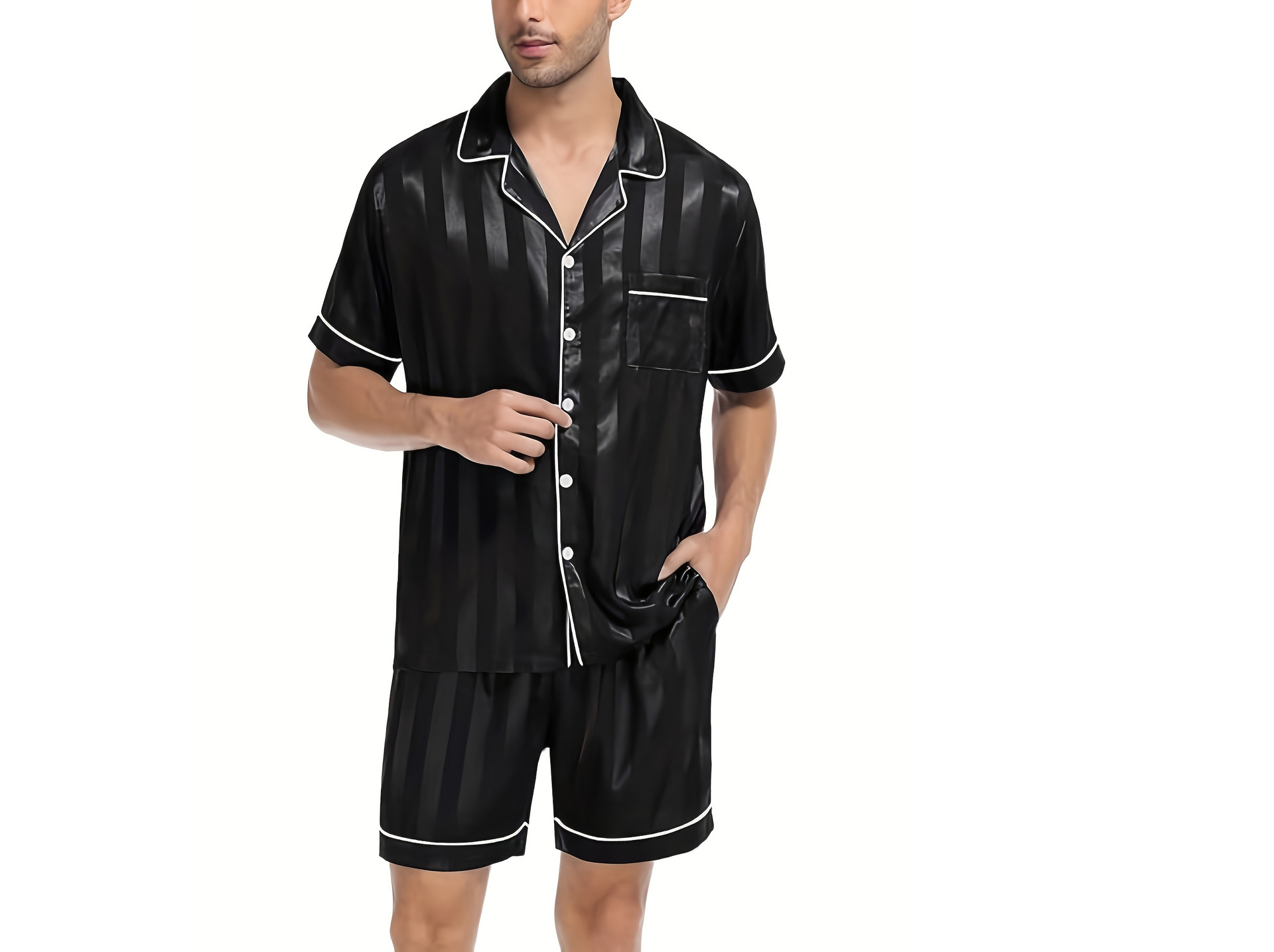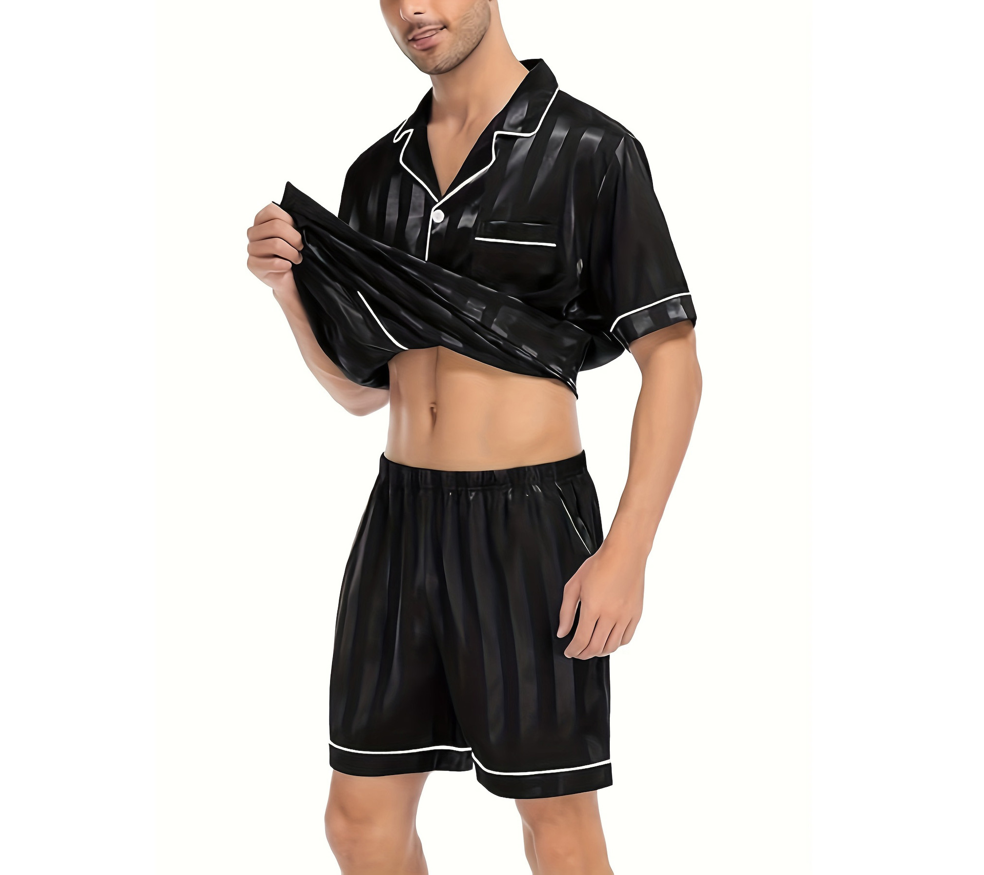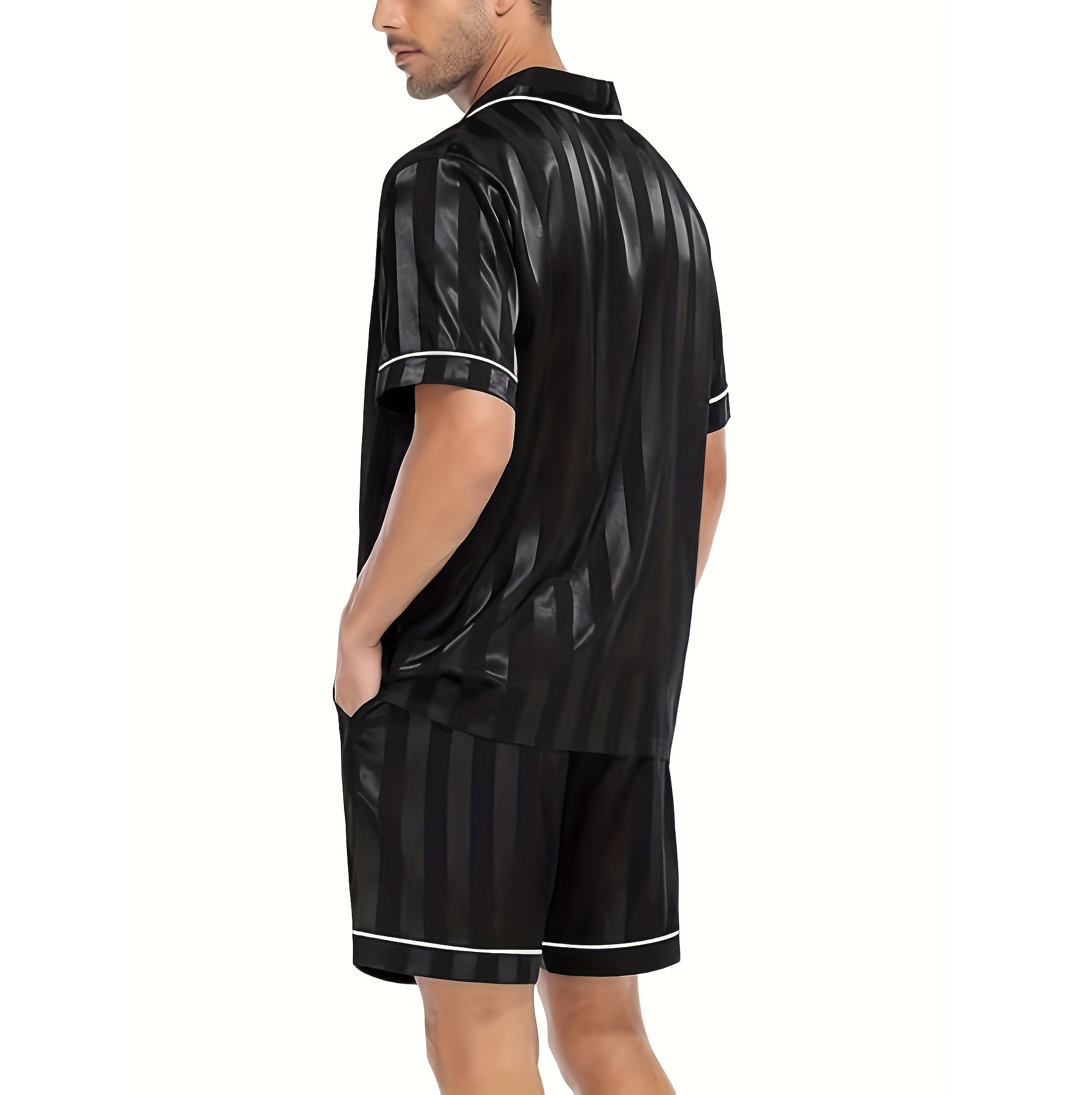 пижама 남성용 새틴 스트라이프 자카드 편안한 잠옷 세트 반팔 반바지 패션 홈웨어