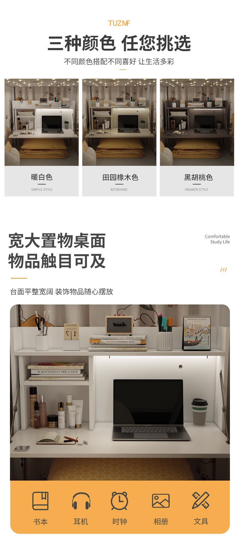 침대 테이블, 대학생용 공중에 뜨는 컴퓨터 테이블, 접이식 게으른 이층 침대 책상, 기숙사 침실 학습용 작은 테이블