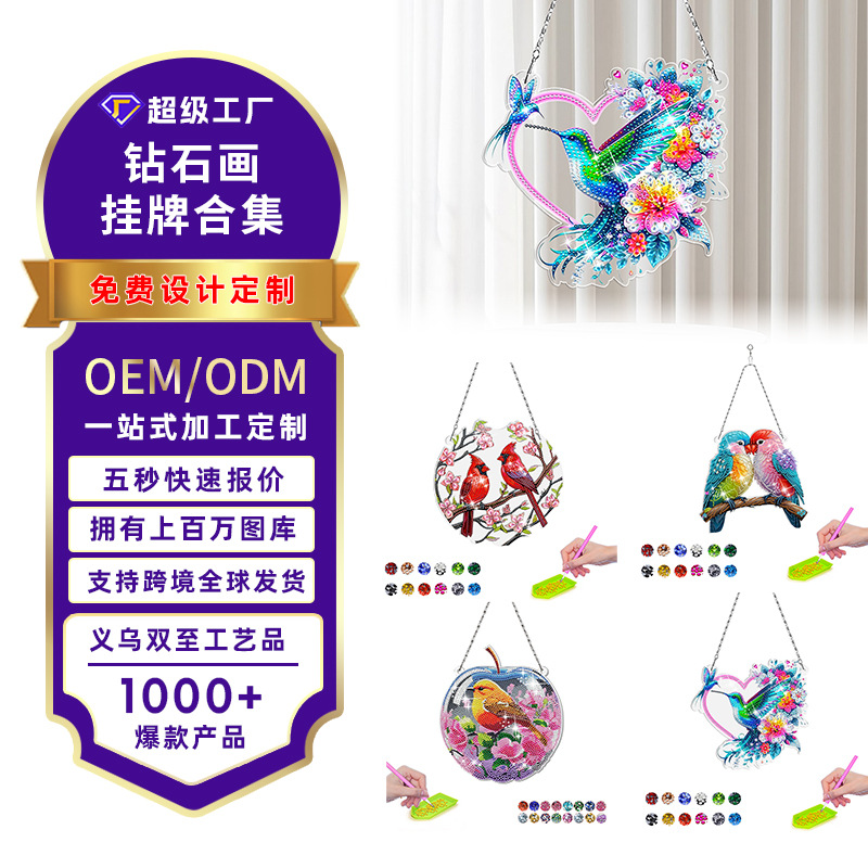 다이아몬드 페인팅 수제 diy 아크릴 장식품 크로스 보더 새로운 스타일의 다이아몬드 가득 찬 크리 에이 티브 다이아몬드 스티커 교수형 펜던트스토어 가기
