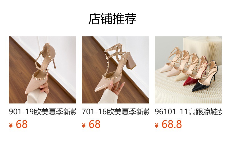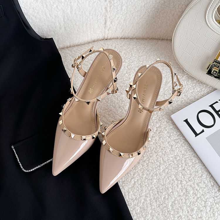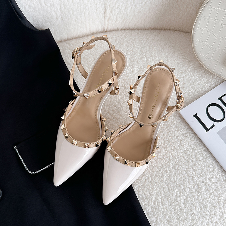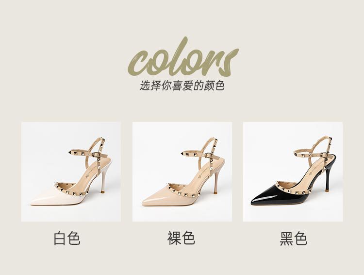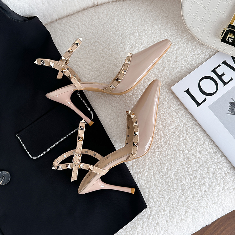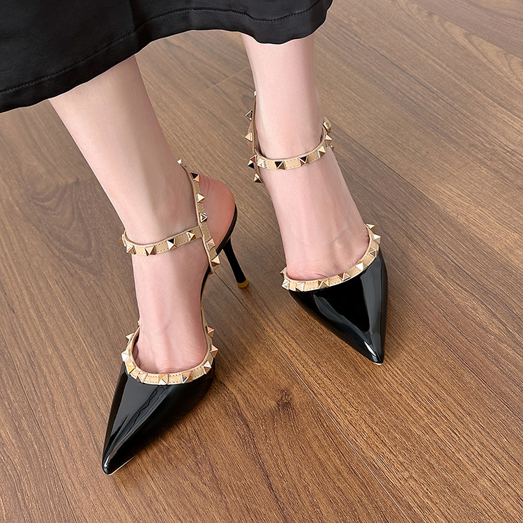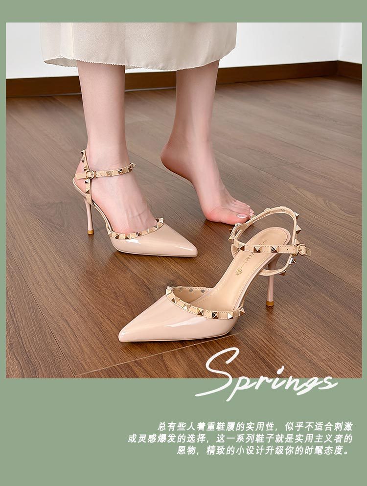 901-15 여름 새로운 유럽과 미국의 리벳 뾰족한 발가락 하이힐 샌들 나이트 클럽 스타일 섹시한 얕은 입 얇은 굽 여성 샌들스토어 가기