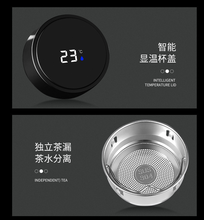 지능형 온도 측정 보온병 컵 304 스테인레스 스틸 물 컵 휴대용 가정용 컵 선물 물 컵 도매 레터링 로고스토어 가기