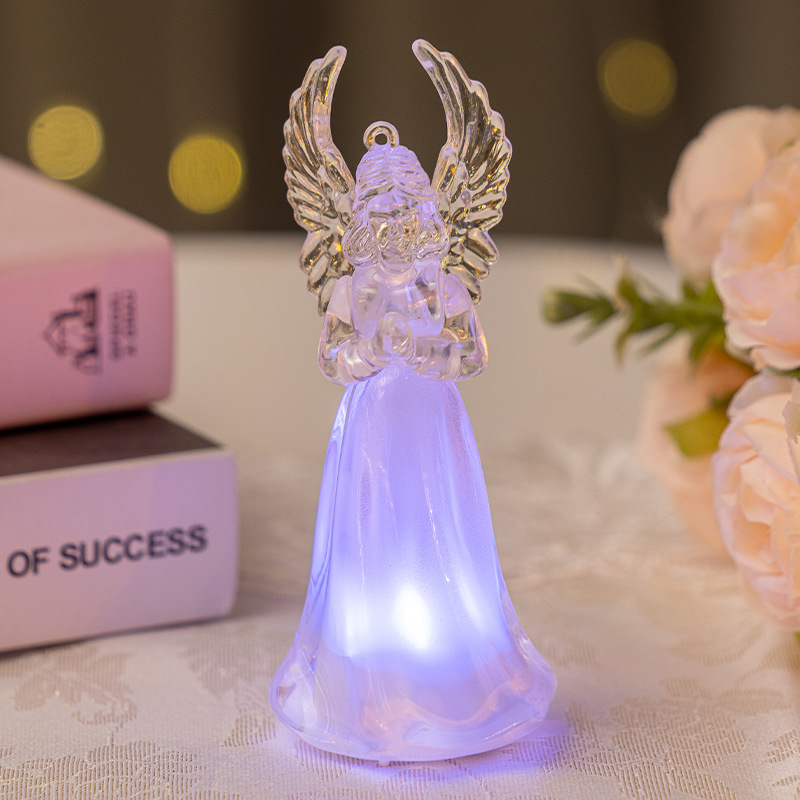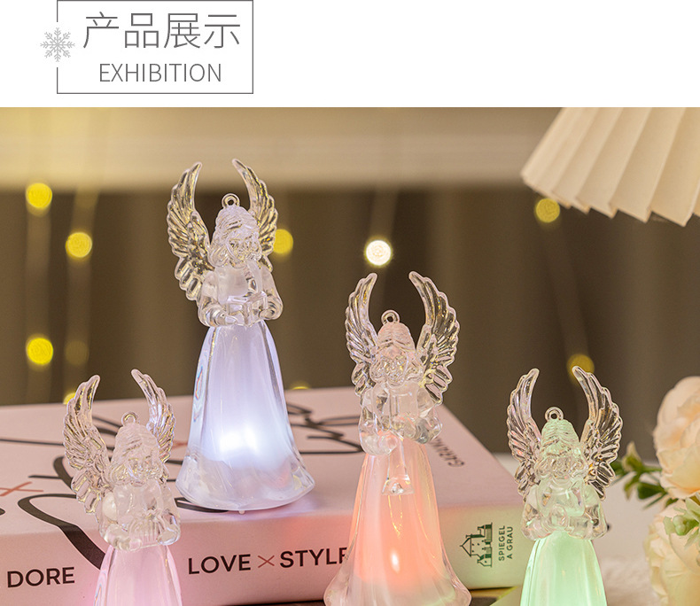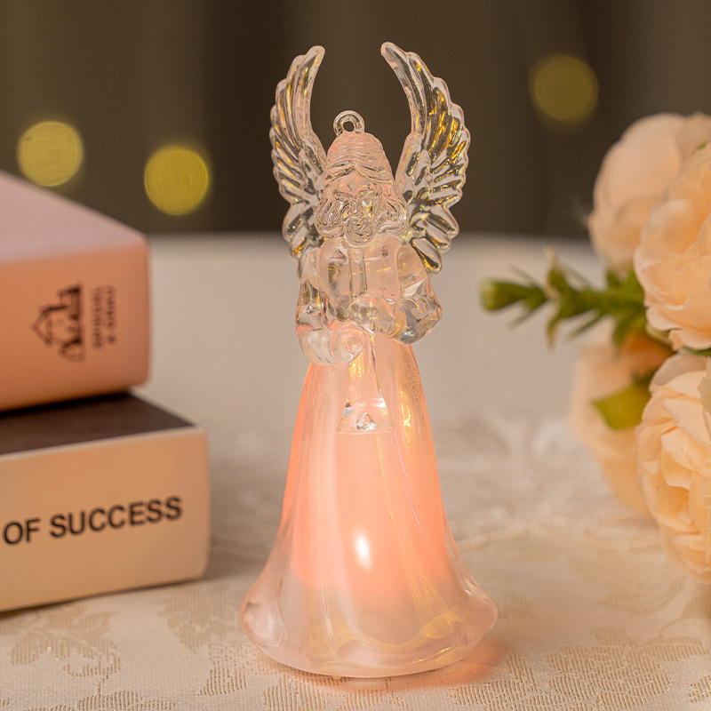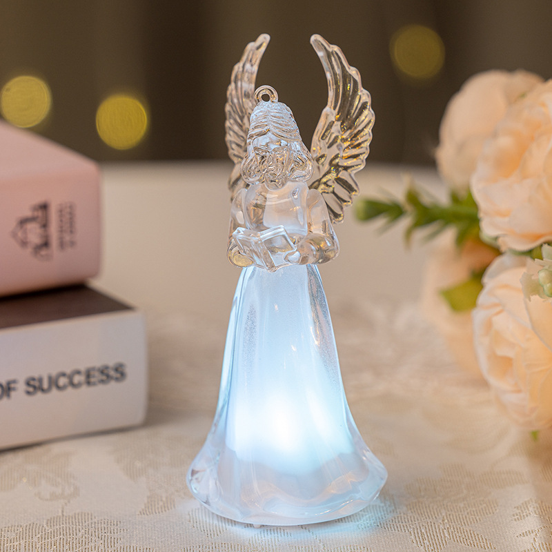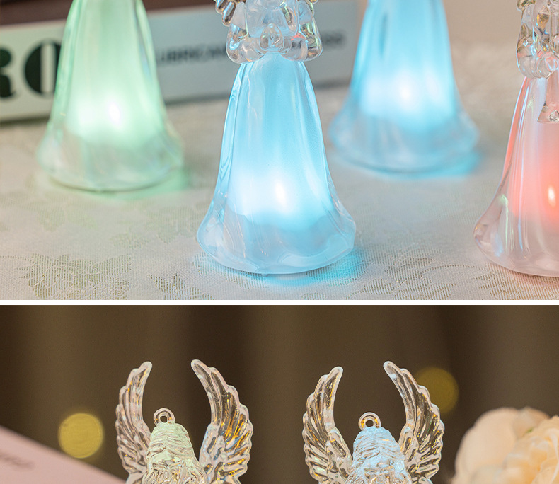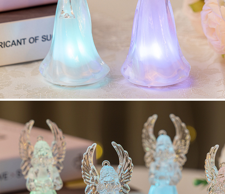 국경 간 새로운 다채로운 빛나는 작은 천사 아크릴 크리스탈 천사 장식품 크리스마스 장식 천사 야간 조명