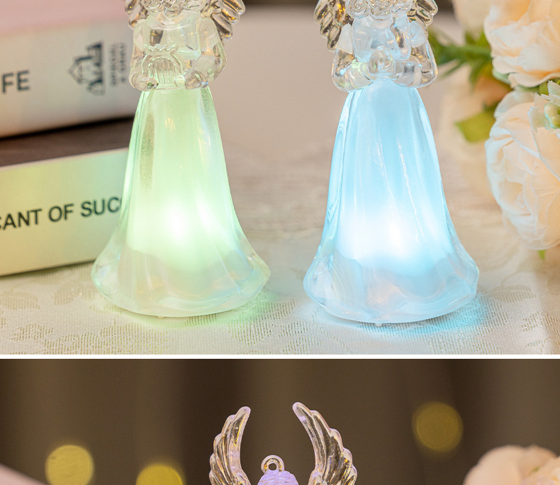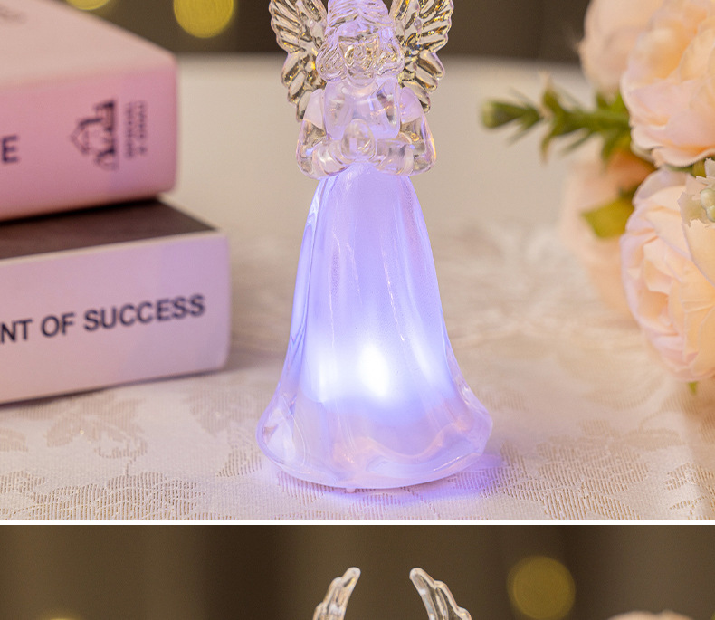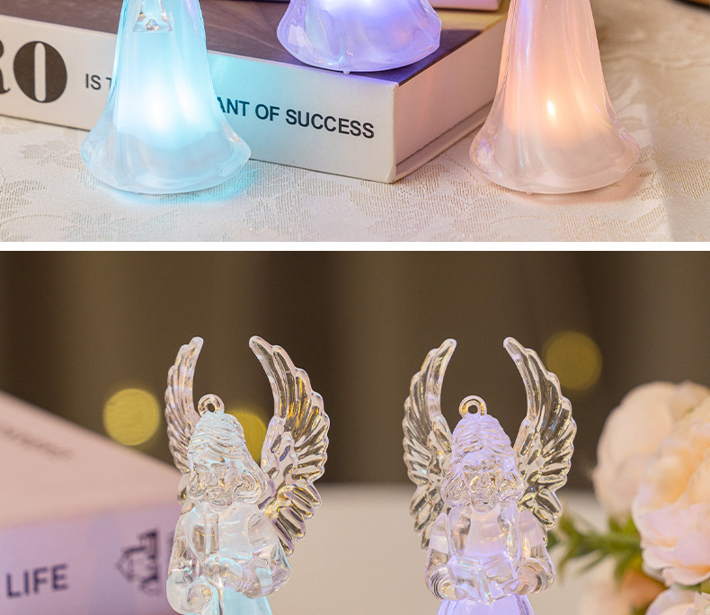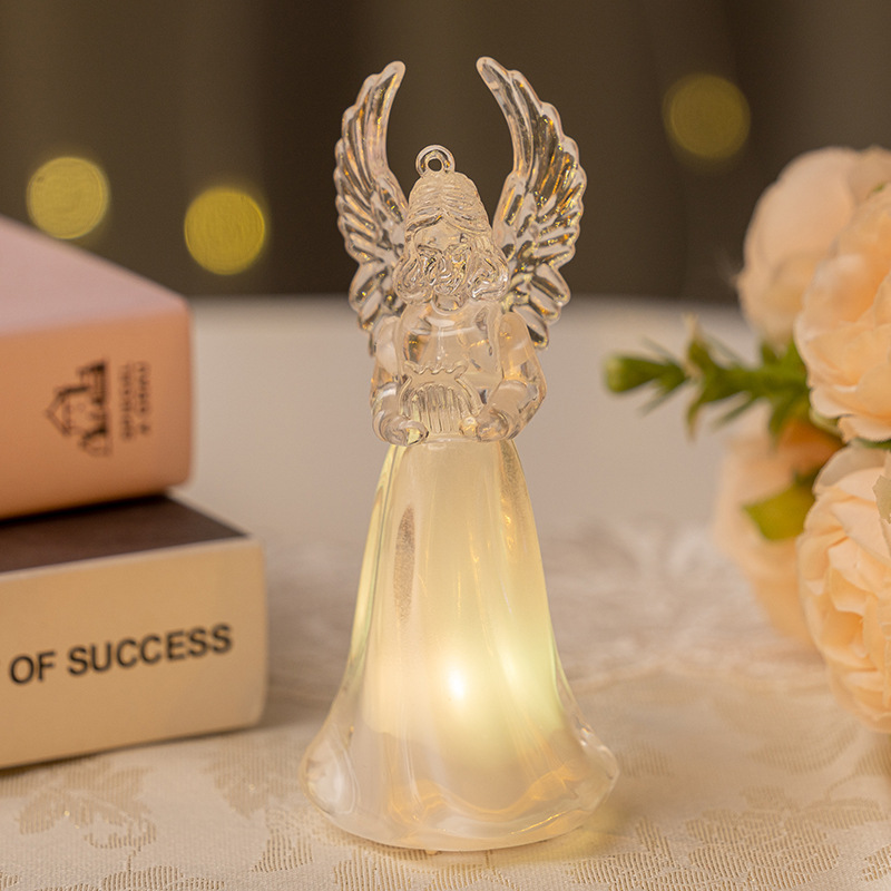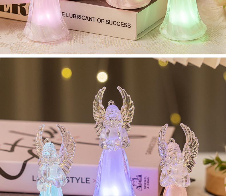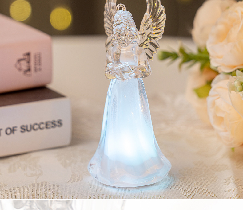 국경 간 새로운 다채로운 빛나는 작은 천사 아크릴 크리스탈 천사 장식품 크리스마스 장식 천사 야간 조명