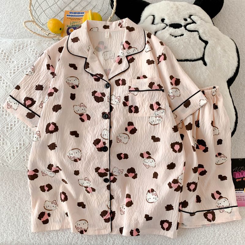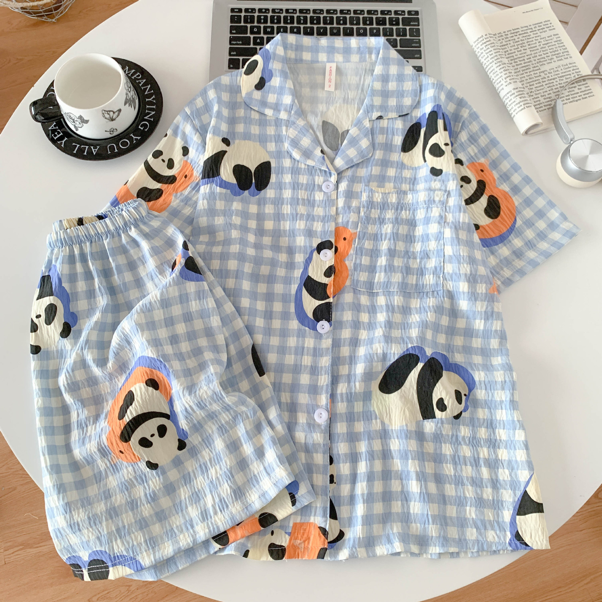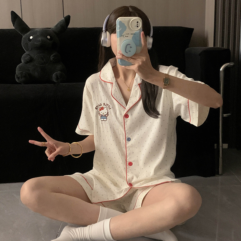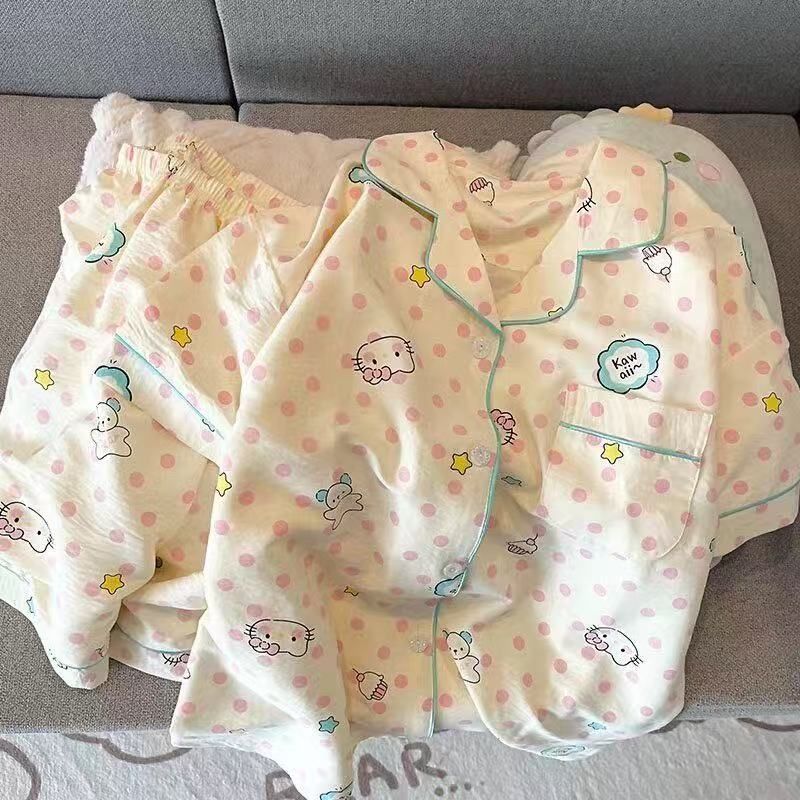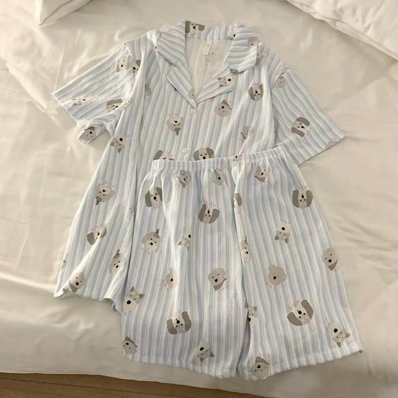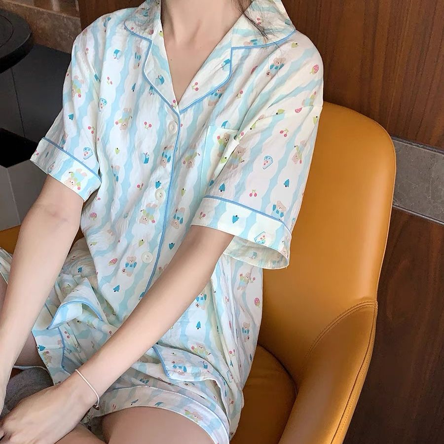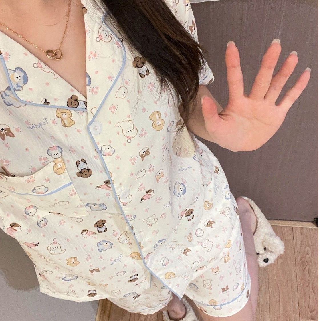 국경 국경 베트남 도매 구름면 귀여운 곰 잠옷 여성 여름 짧은 소매 반바지 카디건 캐주얼 만화 홈 의류