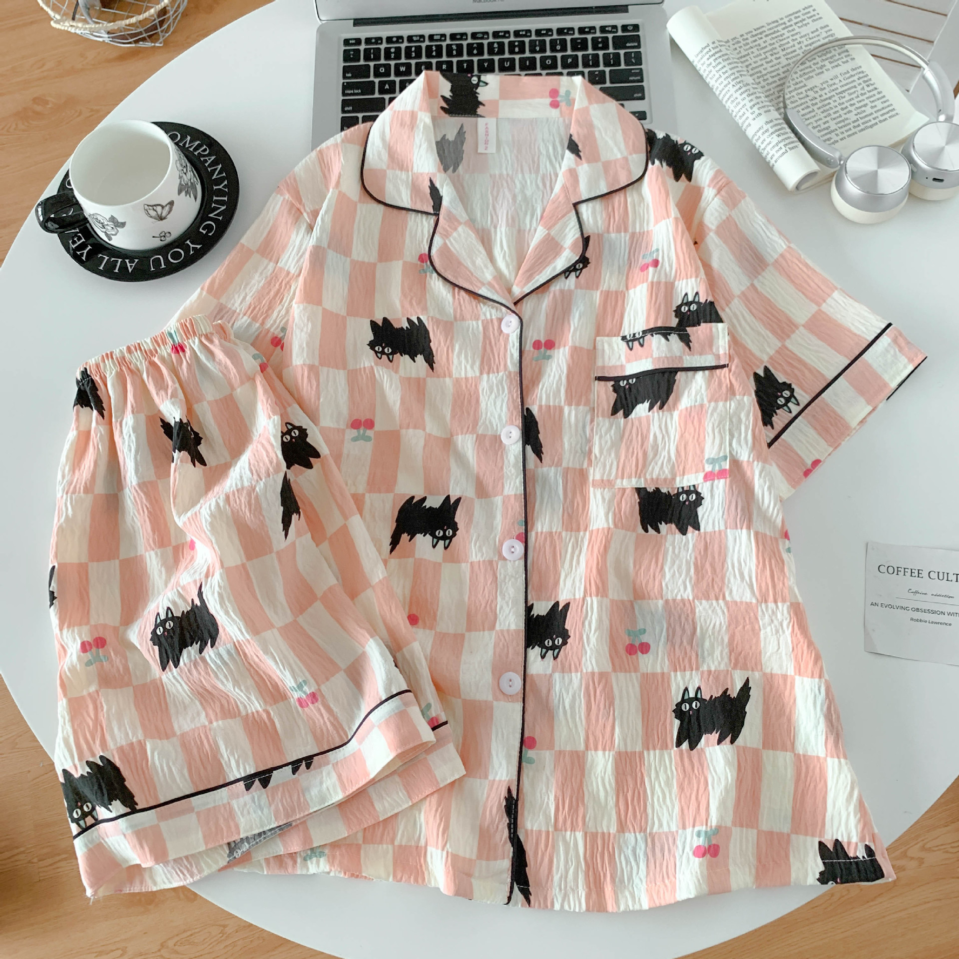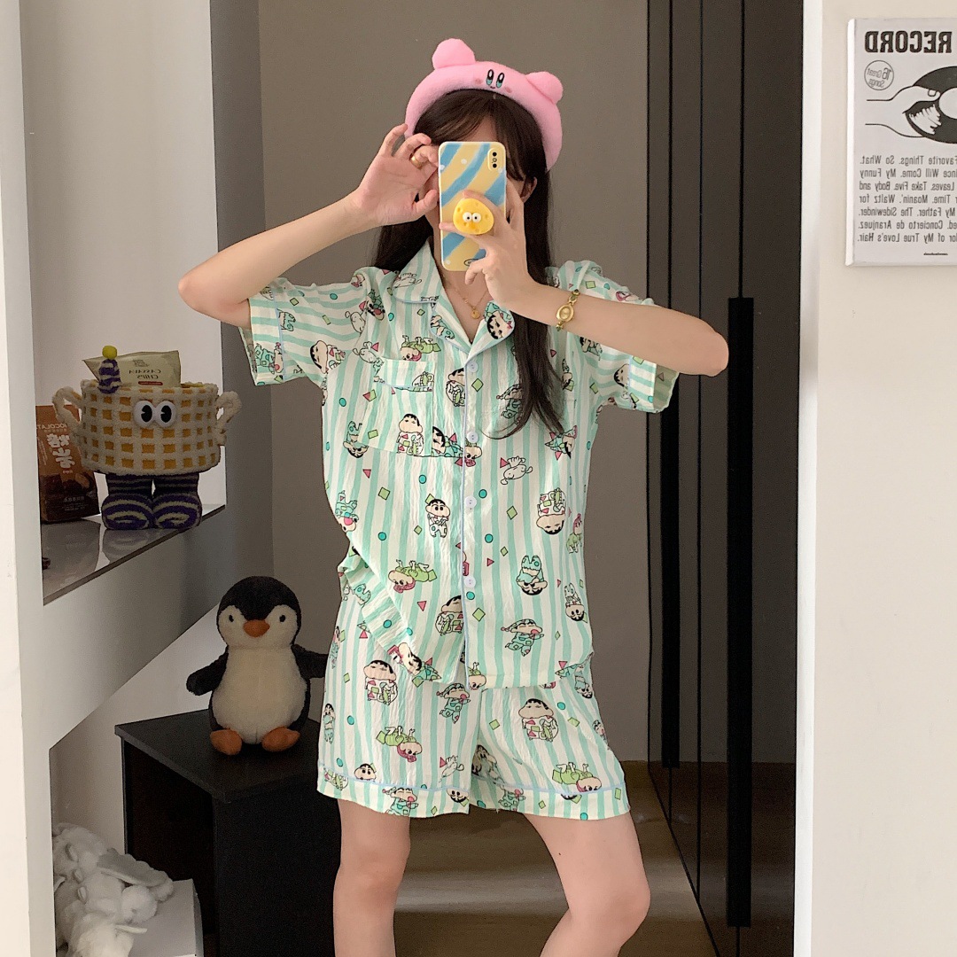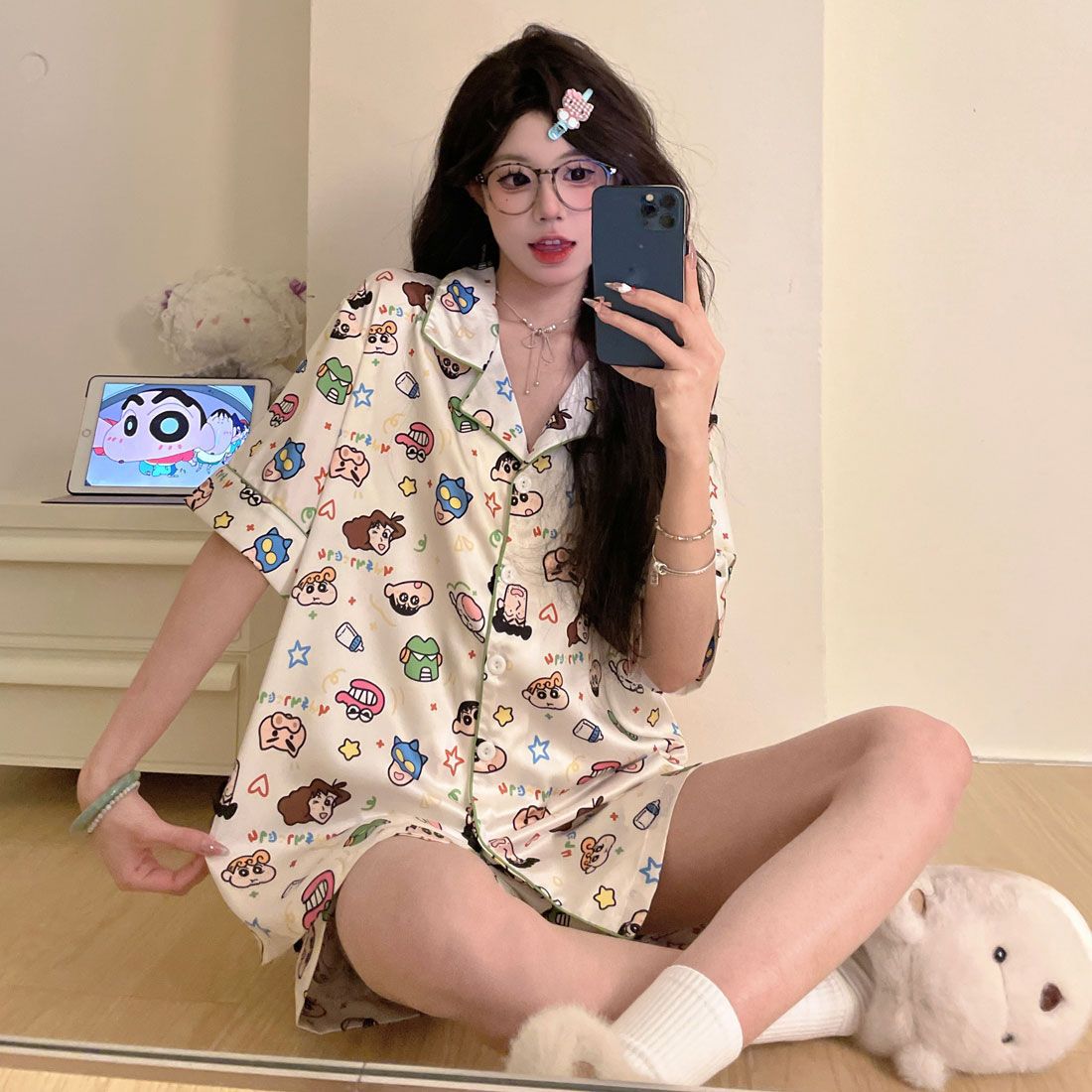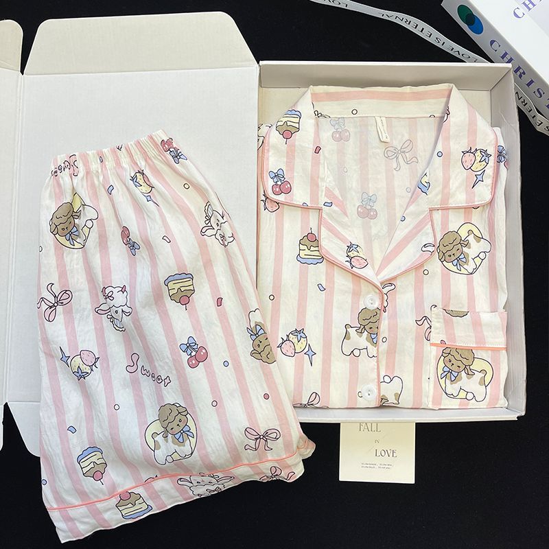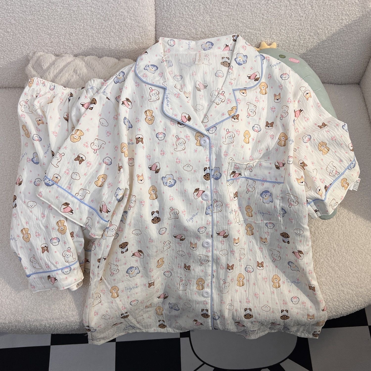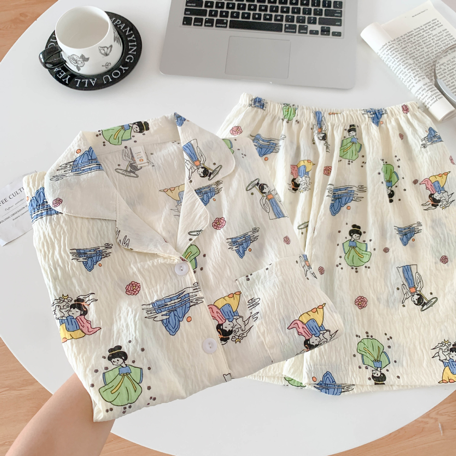 국경 국경 베트남 도매 구름면 귀여운 곰 잠옷 여성 여름 짧은 소매 반바지 카디건 캐주얼 만화 홈 의류