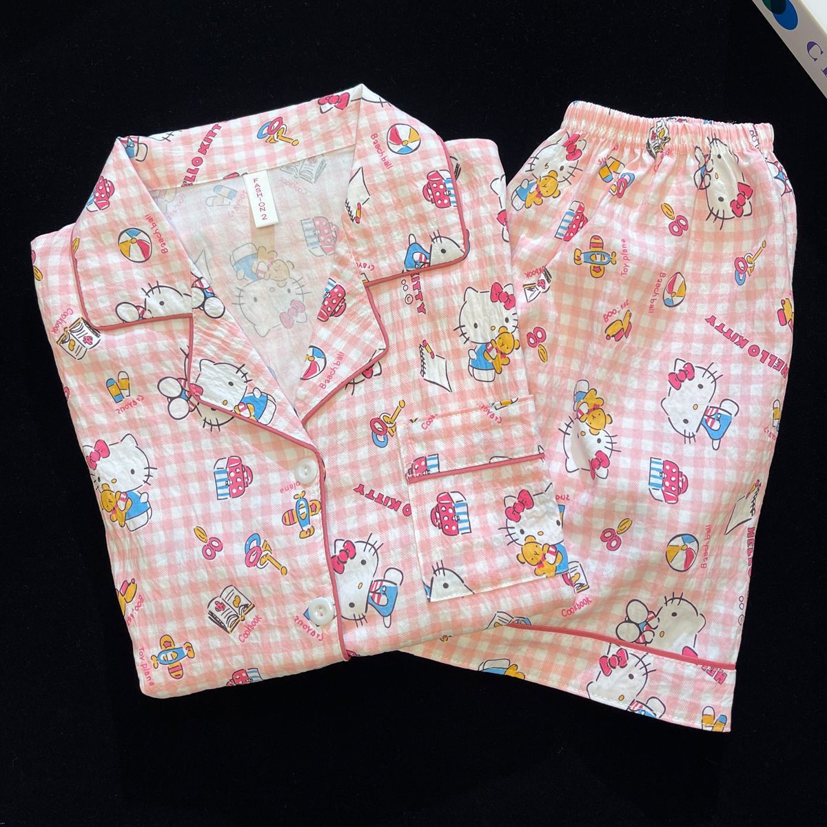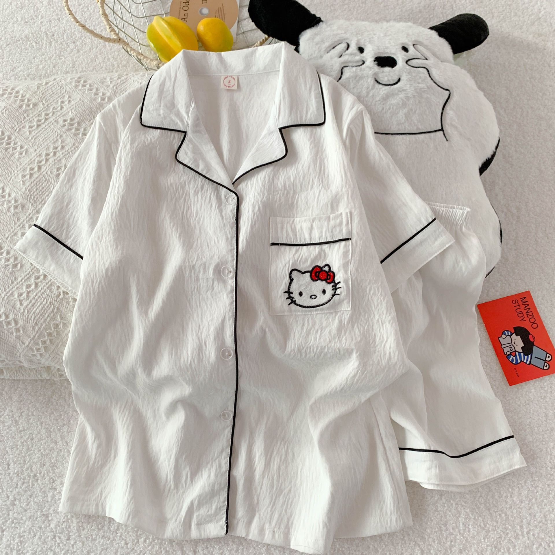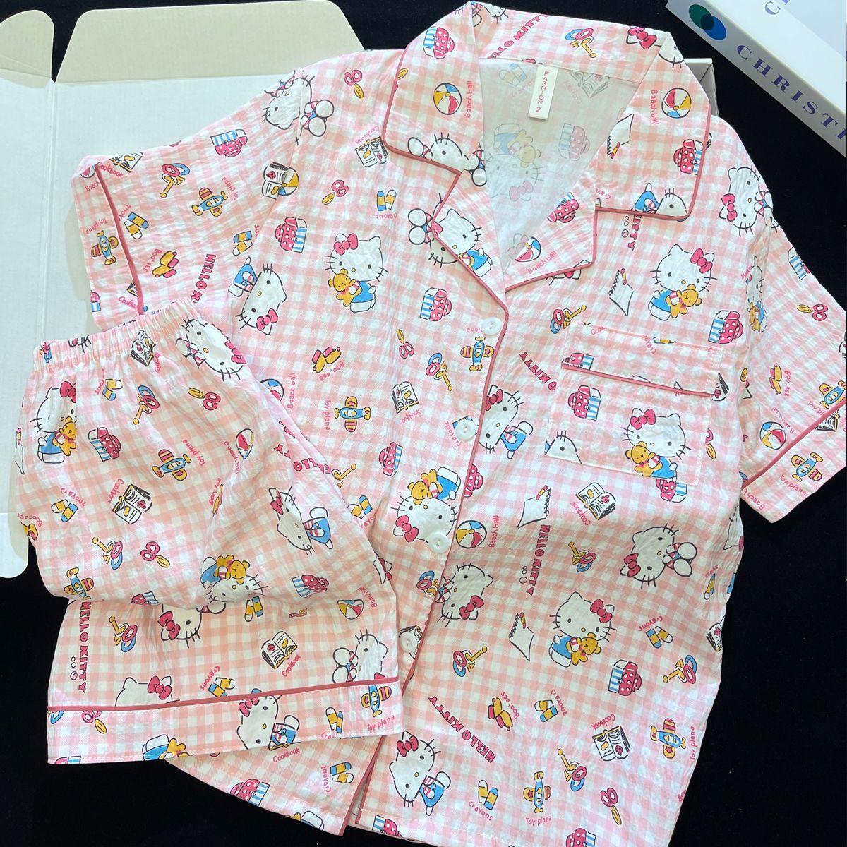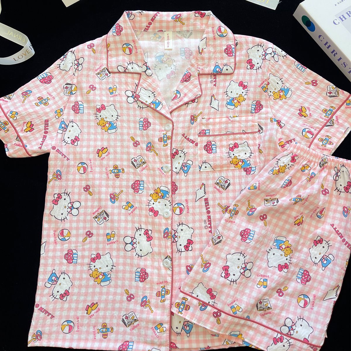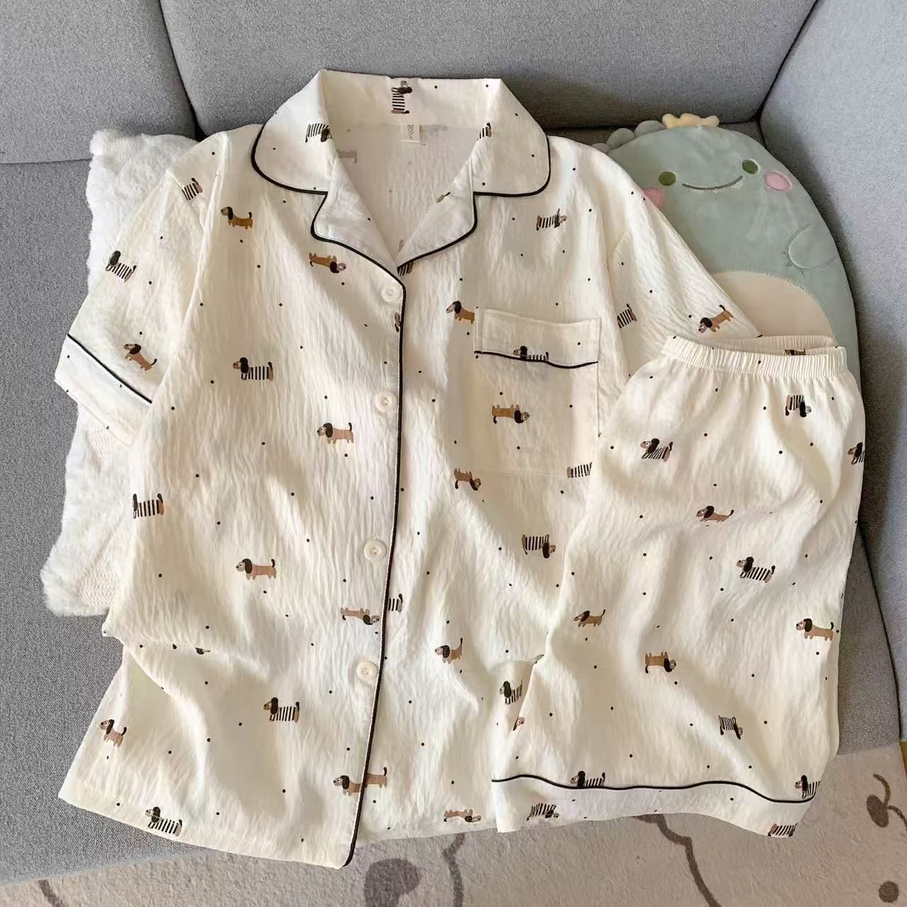국경 국경 베트남 도매 구름면 귀여운 곰 잠옷 여성 여름 짧은 소매 반바지 카디건 캐주얼 만화 홈 의류
