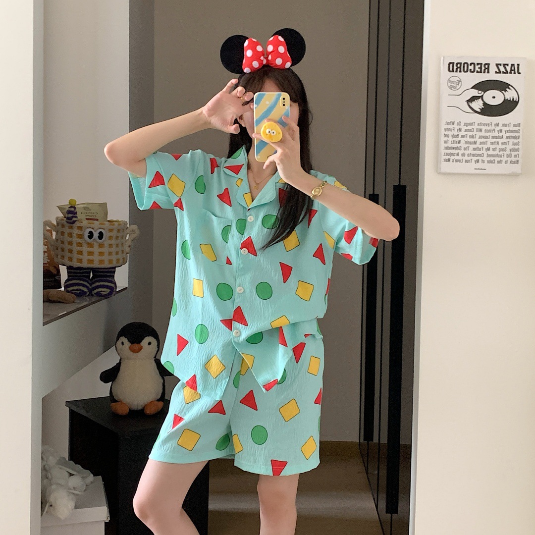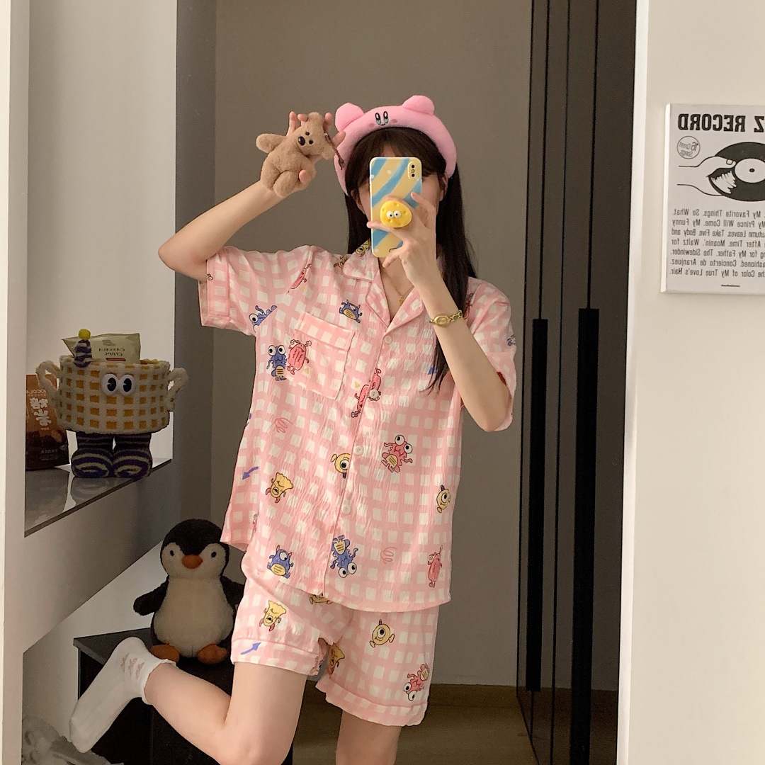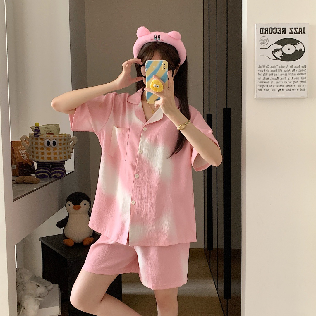국경 국경 베트남 도매 구름면 귀여운 곰 잠옷 여성 여름 짧은 소매 반바지 카디건 캐주얼 만화 홈 의류스토어 가기