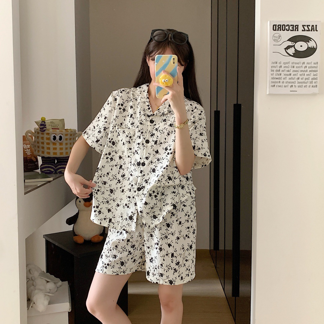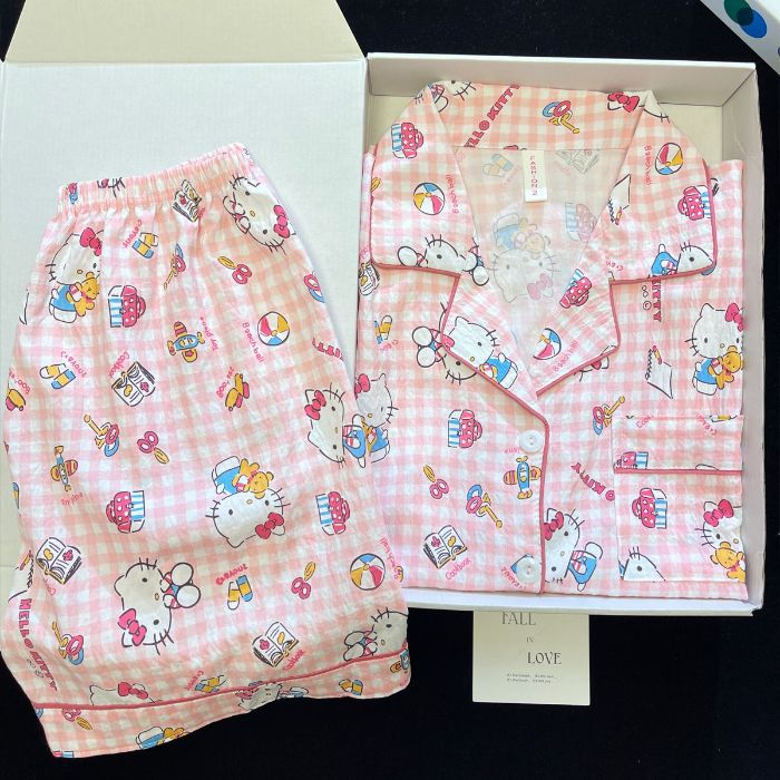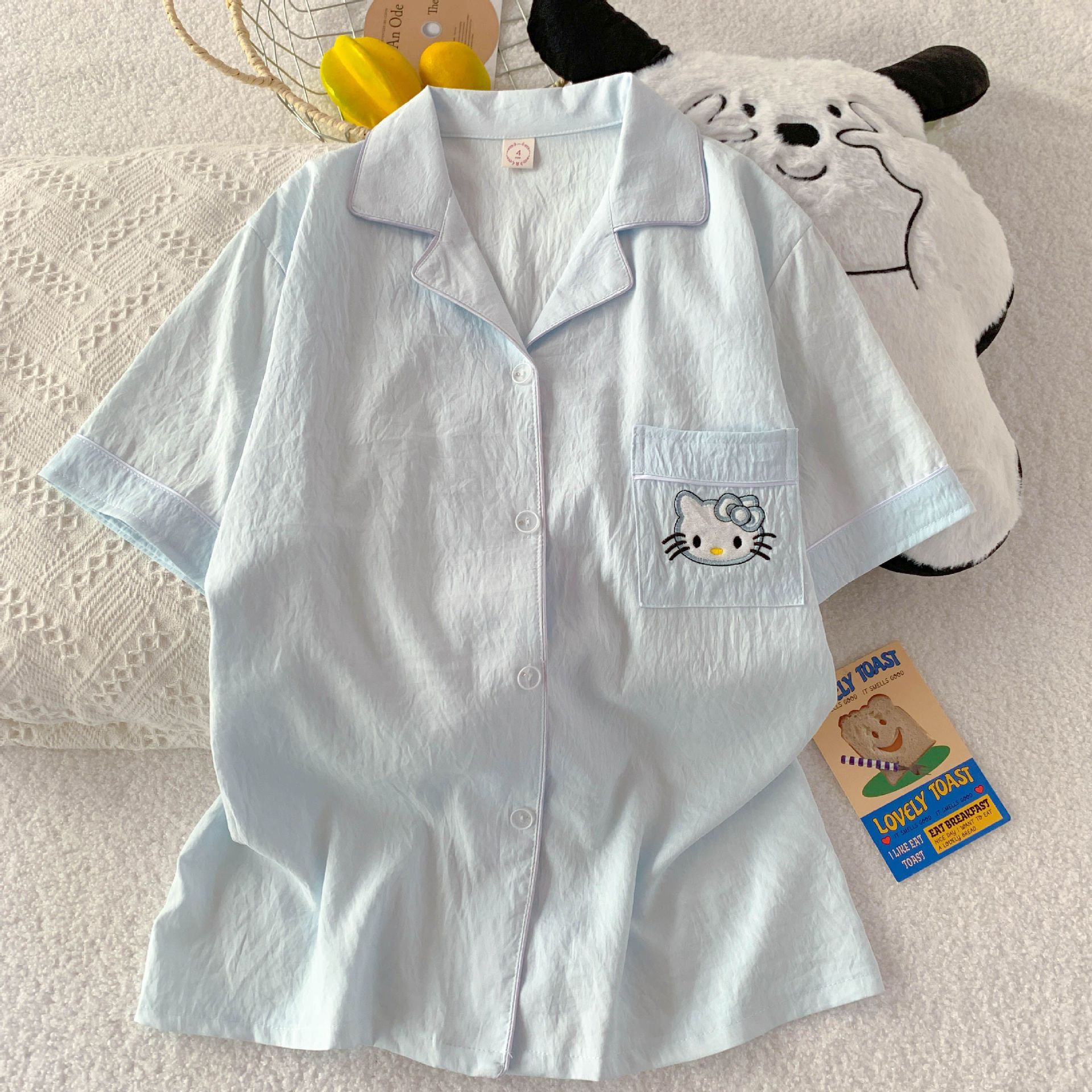 국경 국경 베트남 도매 구름면 귀여운 곰 잠옷 여성 여름 짧은 소매 반바지 카디건 캐주얼 만화 홈 의류스토어 가기
