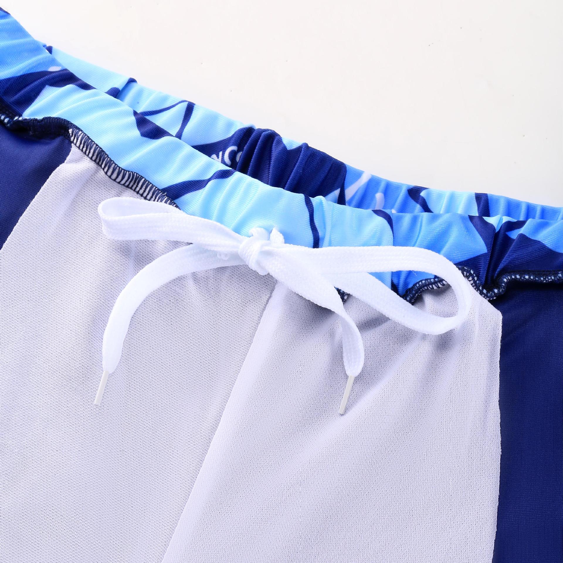 아동용 수영복, 남아용 스플릿 더블 레이어 수영복, 새로운 여름 수영복, 큰 어린이 및 청소년 소년 정장 재고 있음