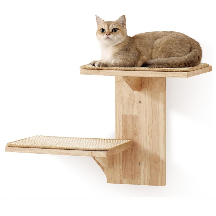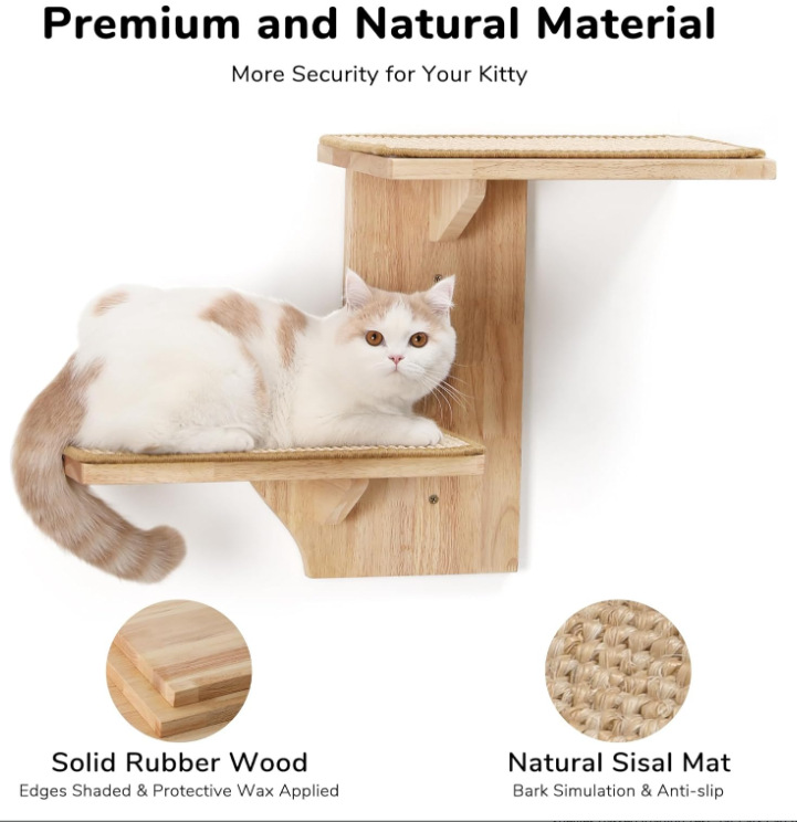 거실 벽에 걸 수 있는 대형 고양이 스크래치 포스트, 고양이 놀이 장난감, 계단식 고양이 점프 플랫폼을 갖춘 국경 간 목재 고양이 클라이밍 프레임