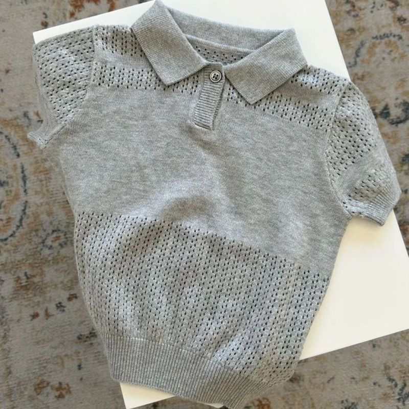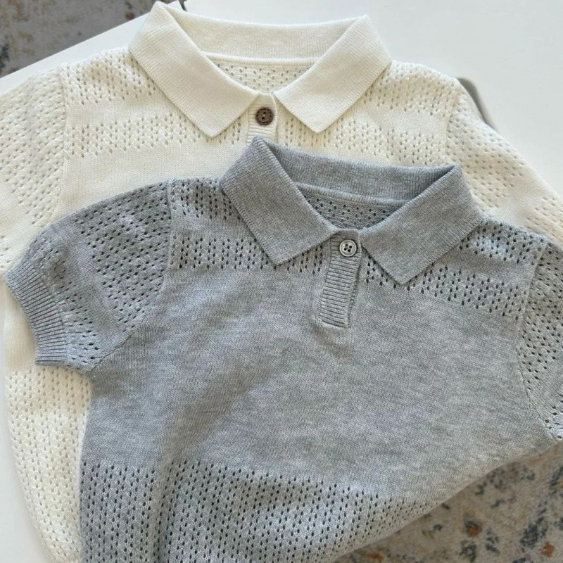 2025 새로운 여름 한국 스타일 아동 의류 중공 반팔 스웨터 얼음 실크 얇은 어린이 베이비 옷깃 폴로 셔츠스토어 가기