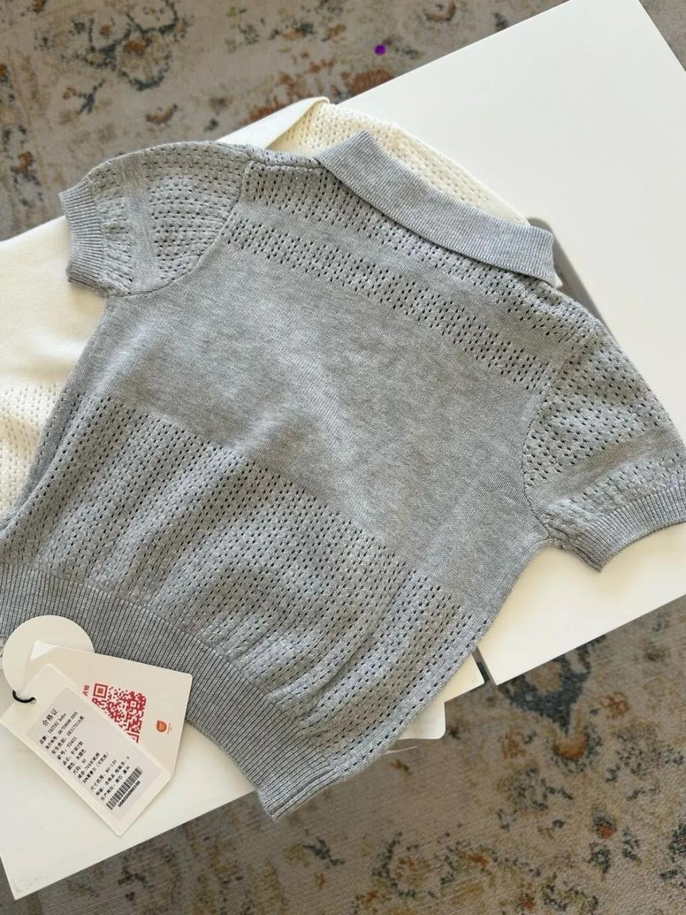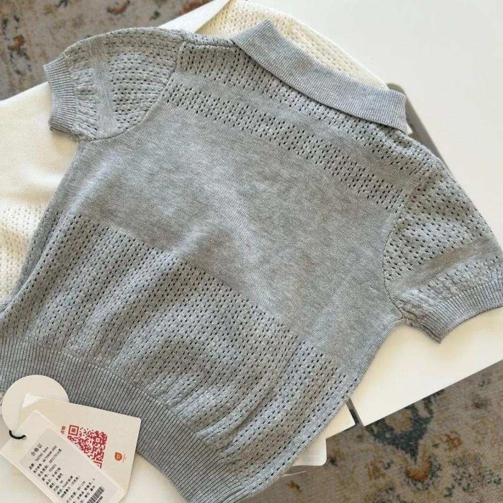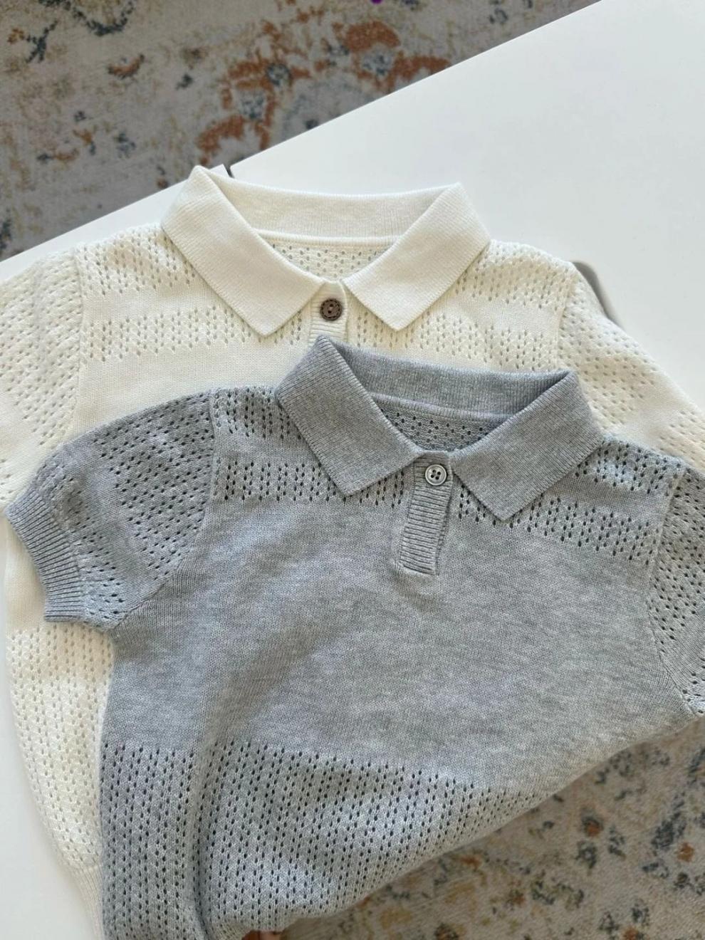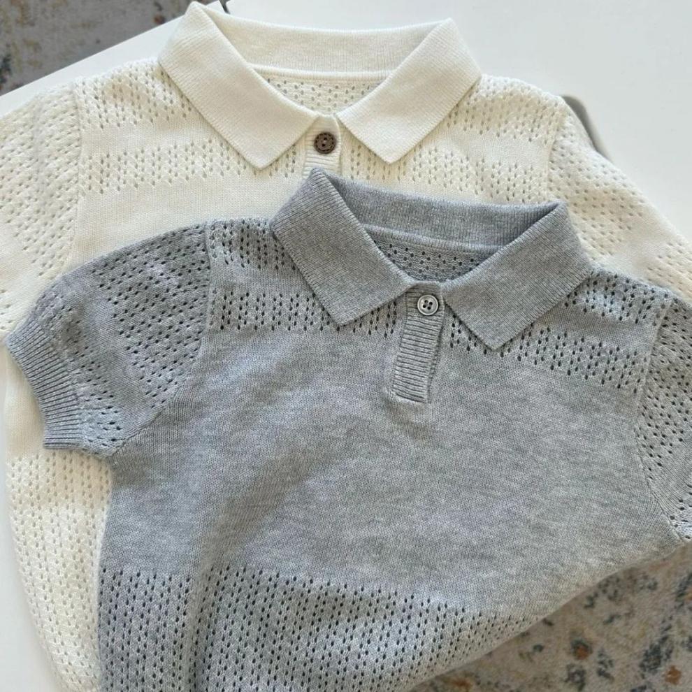 2025 새로운 여름 한국 스타일 아동 의류 중공 반팔 스웨터 얼음 실크 얇은 어린이 베이비 옷깃 폴로 셔츠