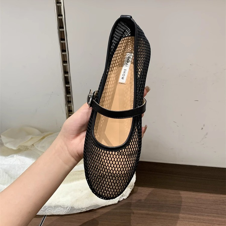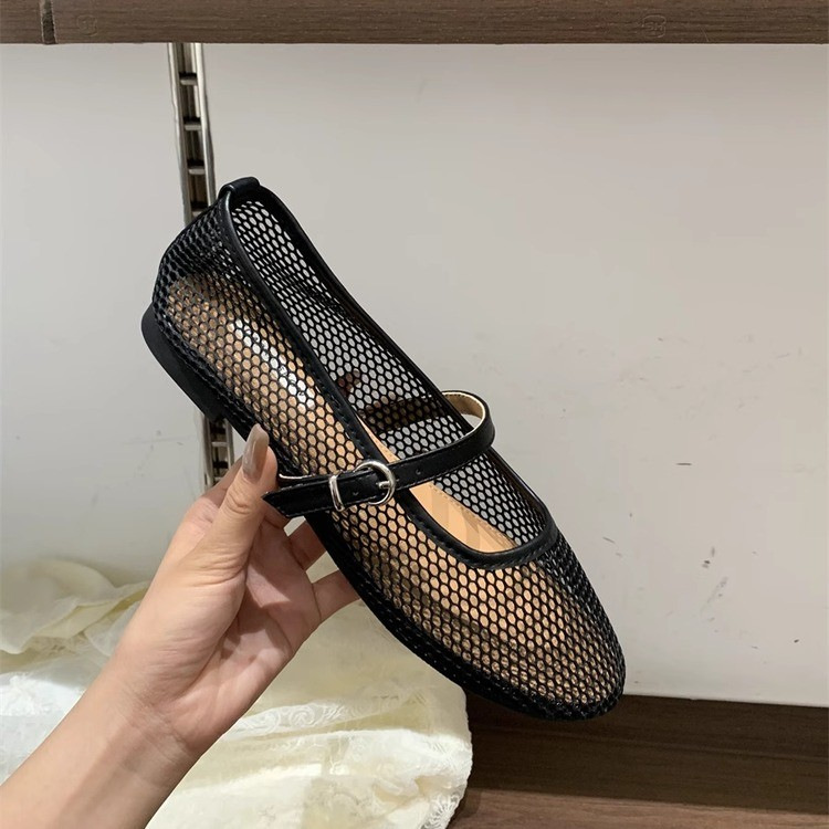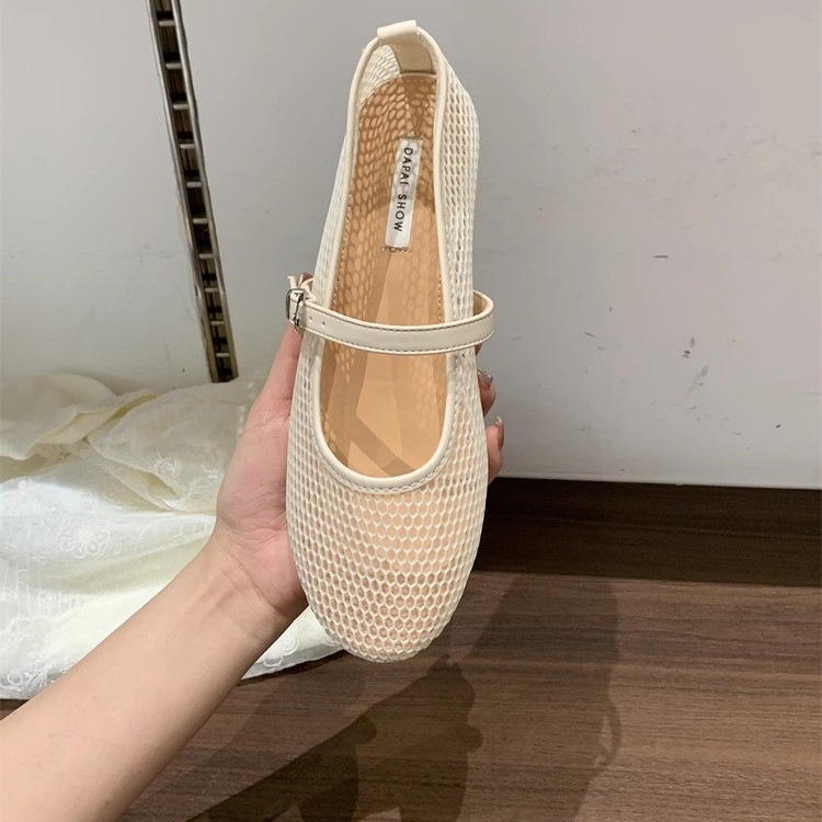 대외 무역 도매 여름 새로운 플랫 슈즈 중공 솔리드 컬러 라운드 토 신발 메쉬 데일리 캐주얼 통근 여성 신발스토어 가기