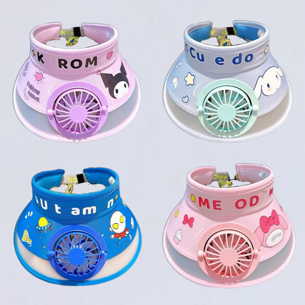 팬이있는 새로운 어린이 태양 모자 여름 여행 야외 태양 모자 소년 아기 소년 소녀 태양 모자