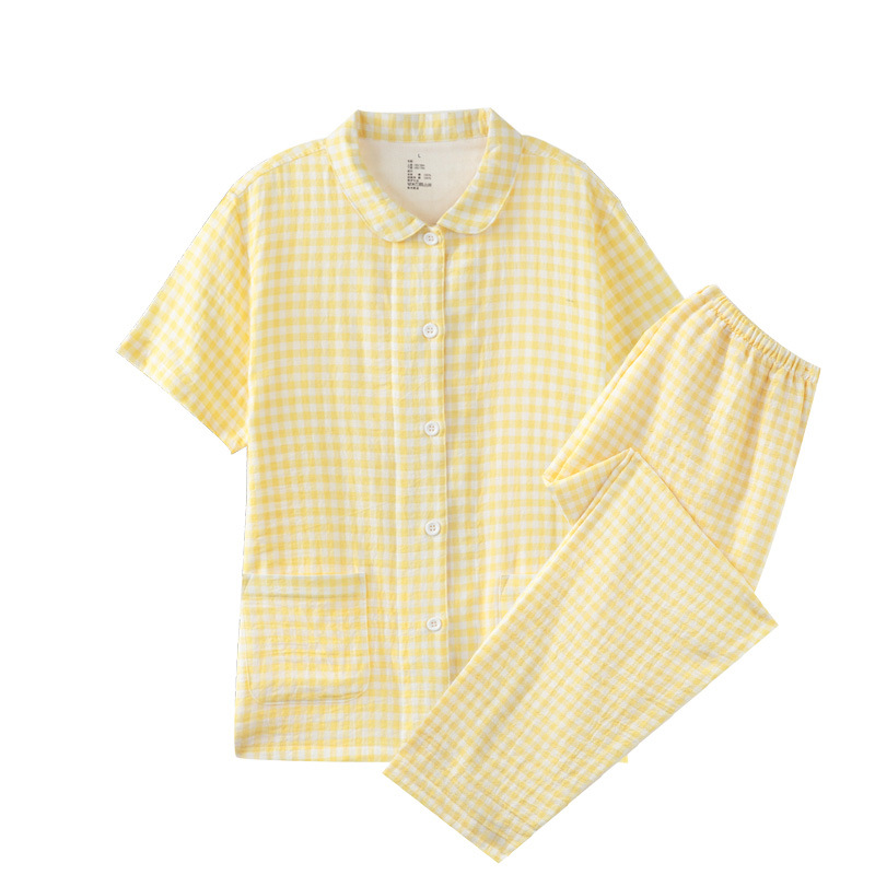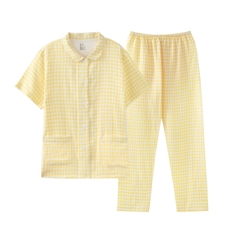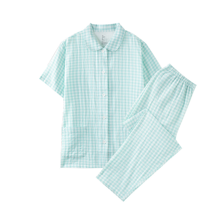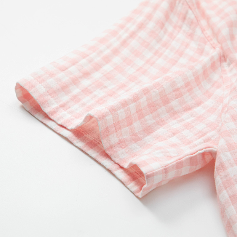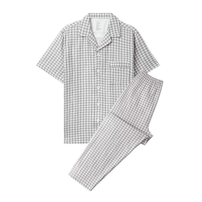 格纹设计融入日系美学,线条简洁,配色低饱和,低调又不失格调,尽显日式简约清新。无侧缝宽松版型包容各种身形,活动不受限,居家放松、休闲小憩都超舒适 。