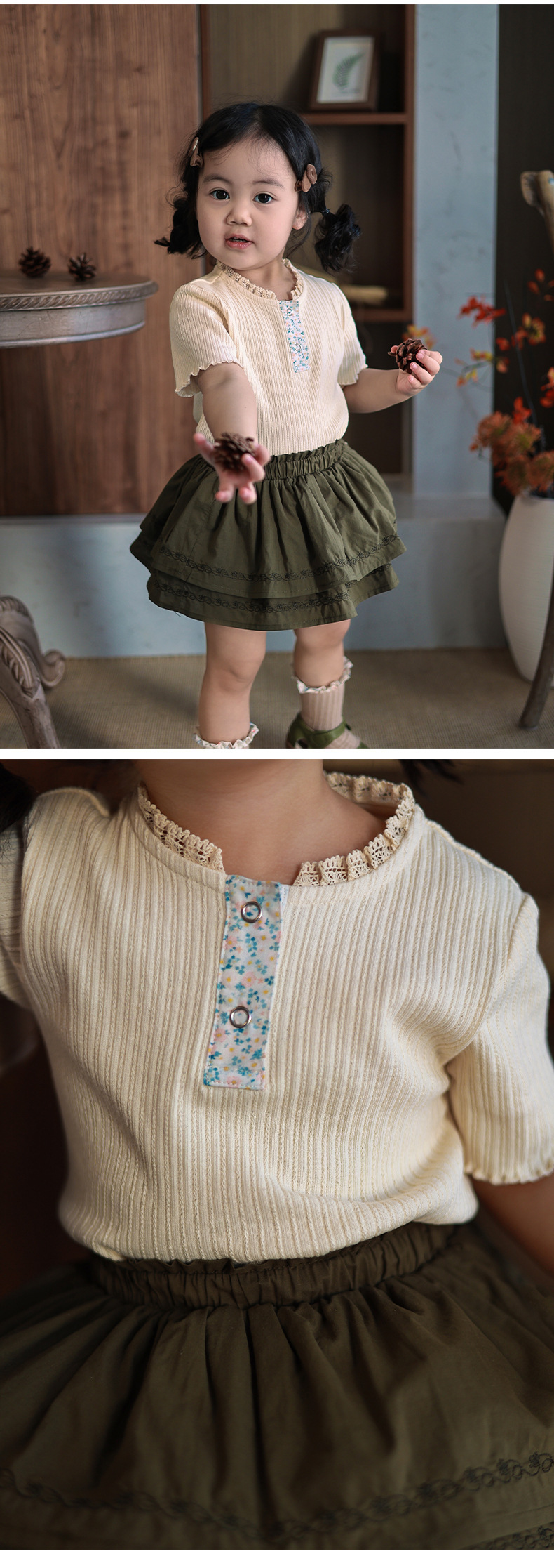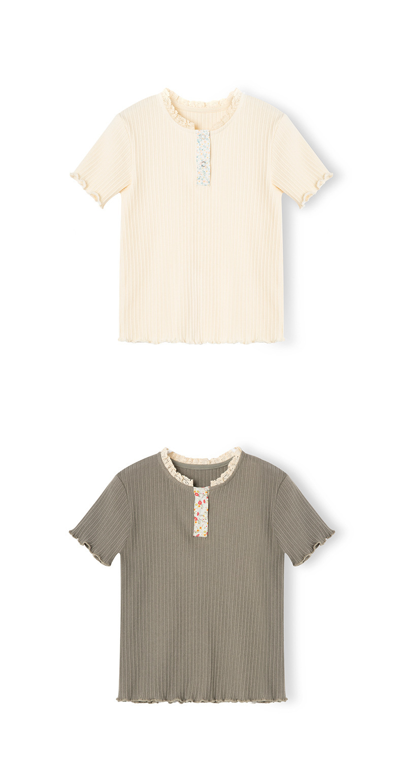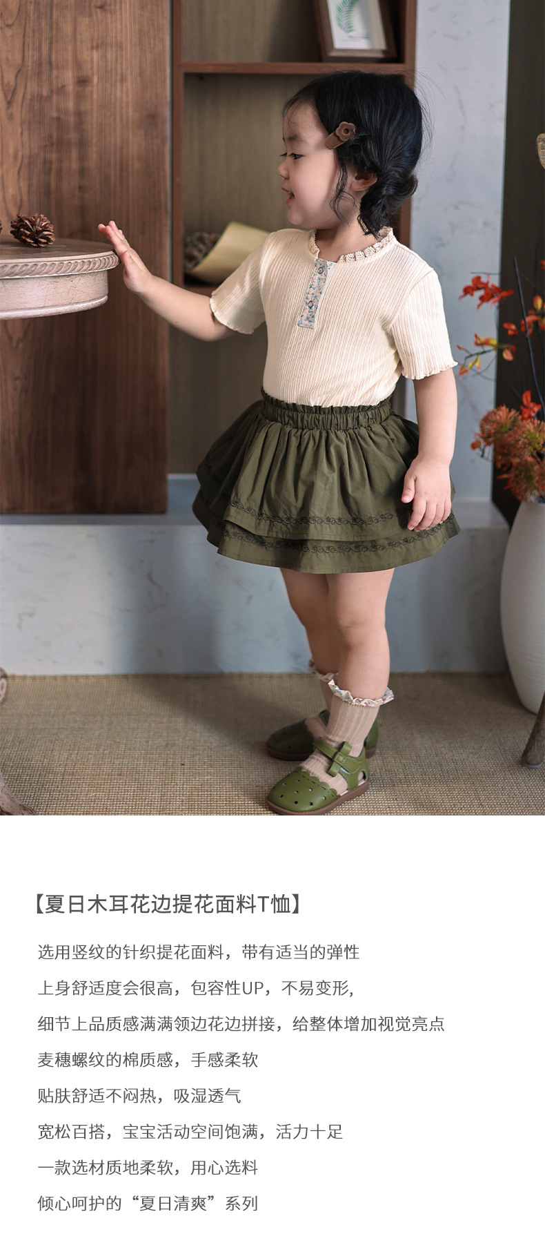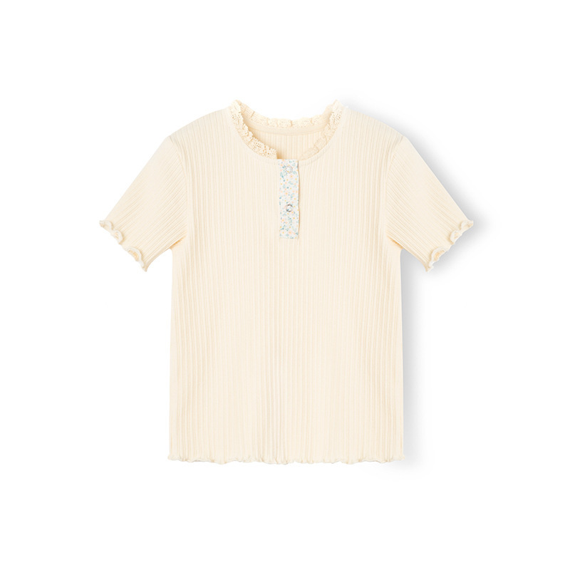 여아 티셔츠 2026 여름 북유럽 스타일 귀여운 러플 밑단 베이비 티셔츠 피부 친화적인 상의 골지 스트라이프 반팔스토어 가기