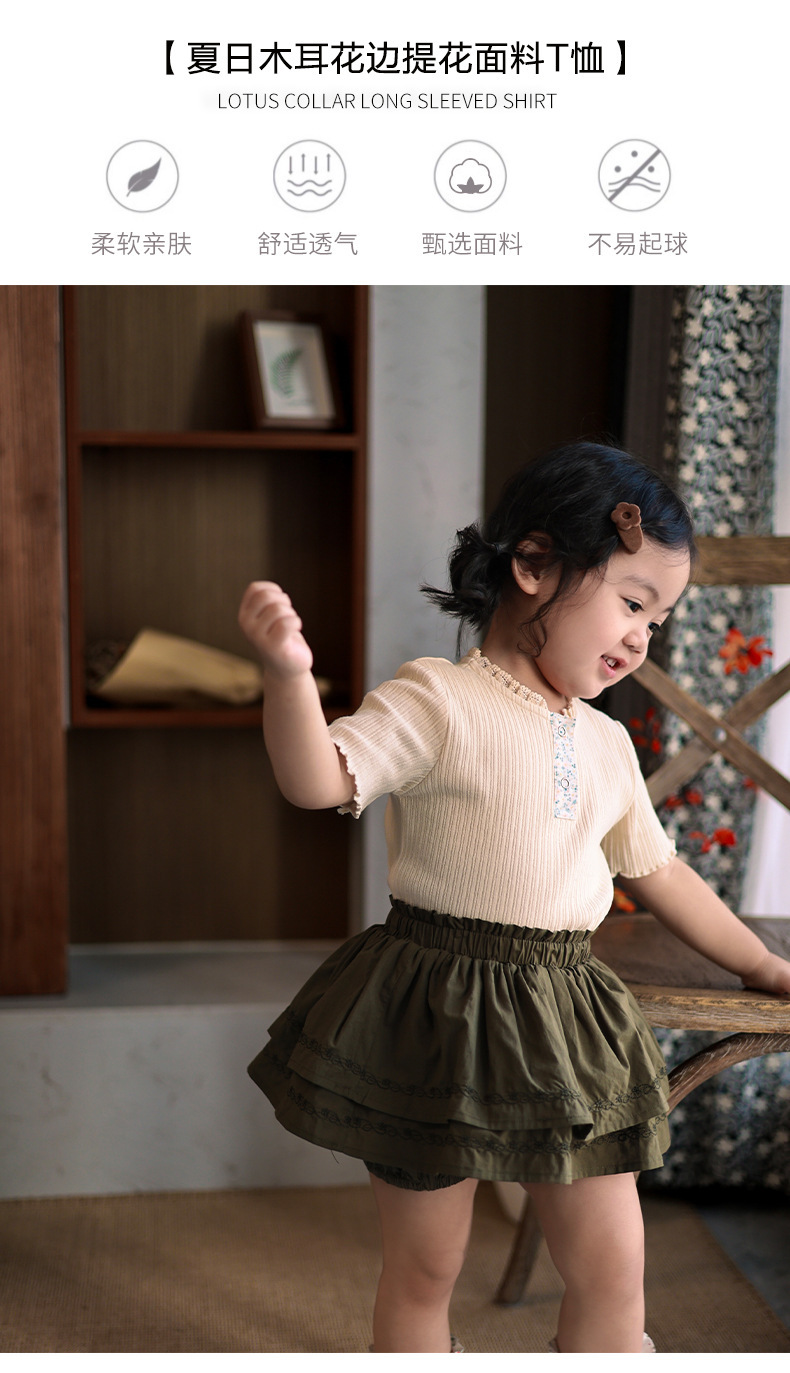 여아 티셔츠 2026 여름 북유럽 스타일 귀여운 러플 밑단 베이비 티셔츠 피부 친화적인 상의 골지 스트라이프 반팔